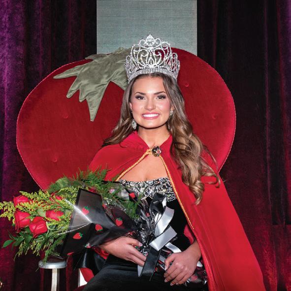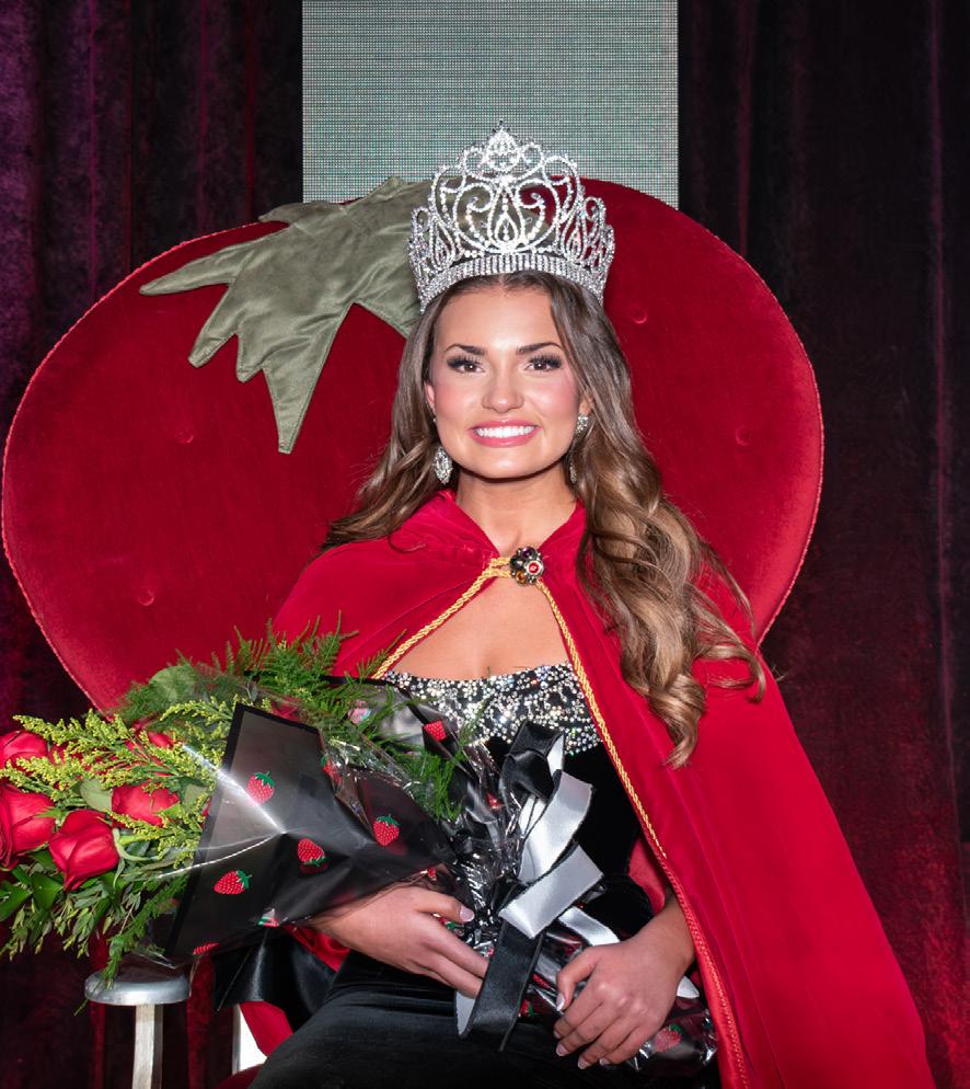 b. 2025 Queen Gabriela Hagman places the crown and sash on 2026 Queen Layla Rothman. The Strawberry Queen and her court will make more than 80 appearances throughout the year.