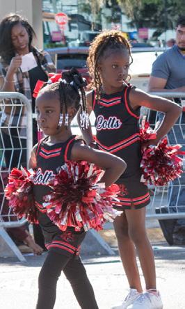 b. Members of the Plant City Colts youth cheer and football teams participating in the festivities. The Colts cheerleaders performed for the crowds along MLK Jr. Blvd.