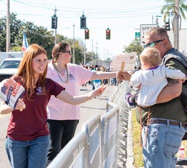 d. The Hillsborough County Supervisor of Elections office passed out hand flags along the parade’s route, greeting Hillsborough County citizens big and small.