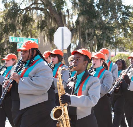 a. The Plant City High School Raiders Marching Band was one of many featured in the parade. The marching bands provided live entertainment to spectators.