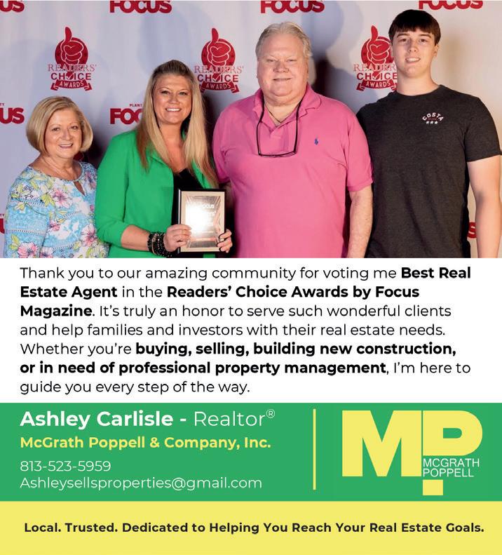 City Chamber of Commerce, Plant City Main Street, and St. Vincent de Paul Housing. Additionally, we are members of both the Suncoast Tampa Association of Realtors and the Lakeland Association of Realtors, with our esteemed Ashley Carlisle (Realtor of the Year) actively involved with LAR.