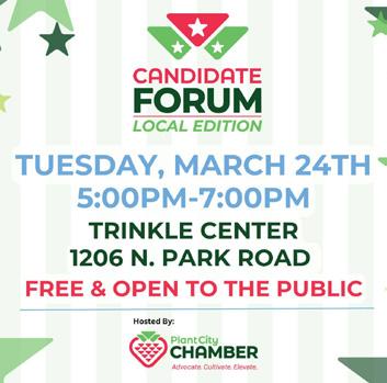 This forum will provide residents and members of the business community an opportunity to hear directly from the candidates running for Plant City City Commission. Each candidate will introduce themselves, answer prepared questions about issues impacting our community, and share their vision for the future of Plant City.