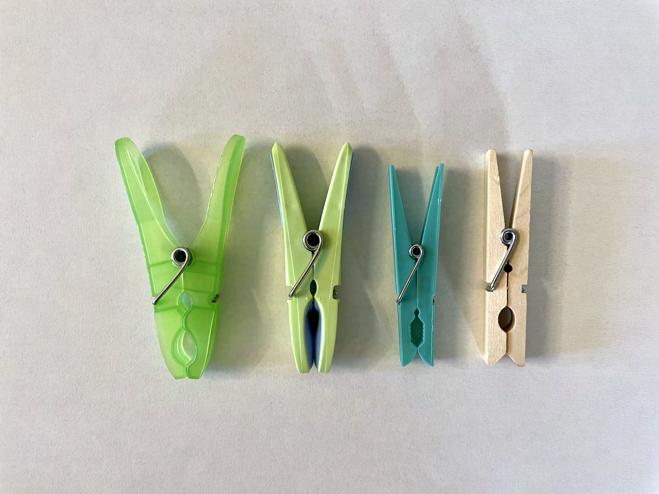 First, we took a closer look at the wooden clothespin in comparison to other clothespins. We disassembled it into its individual parts, looked at the length of the individual elements are (including the stretched wire), tested their tension force and weighed them. Even here we noticed that the wooden clothespin offers clear advantages over others.