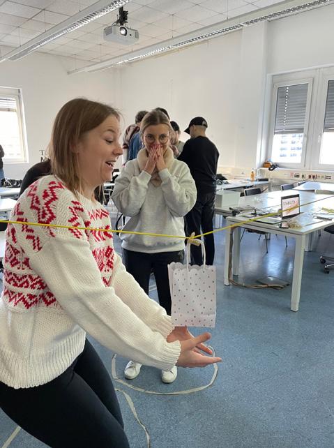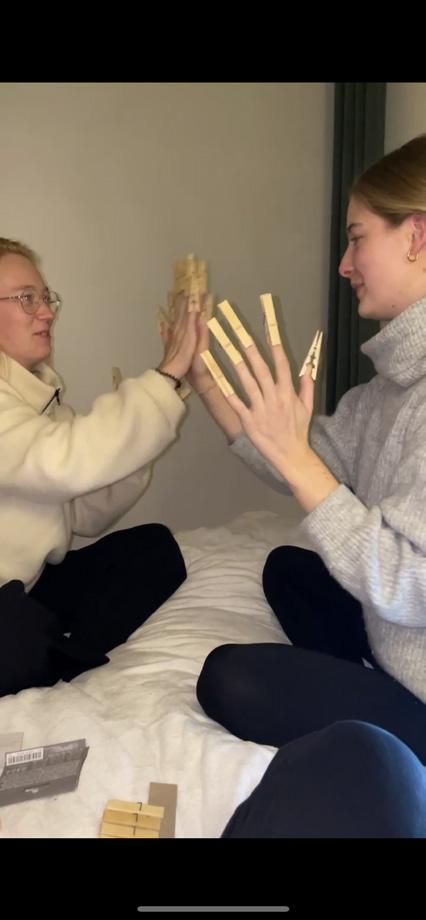 With our final presentation, we wanted to show what a simple wooden clothespin can achieve and then apply it to personal resilience. To do this, we incorporated a few small tasks that on the one hand test resilience, but above all strengthen it through reflection. In addition to eating popcorn with a clothespin and grabbing cards with it, the two main tasks included some resilience cards and a quiz game.