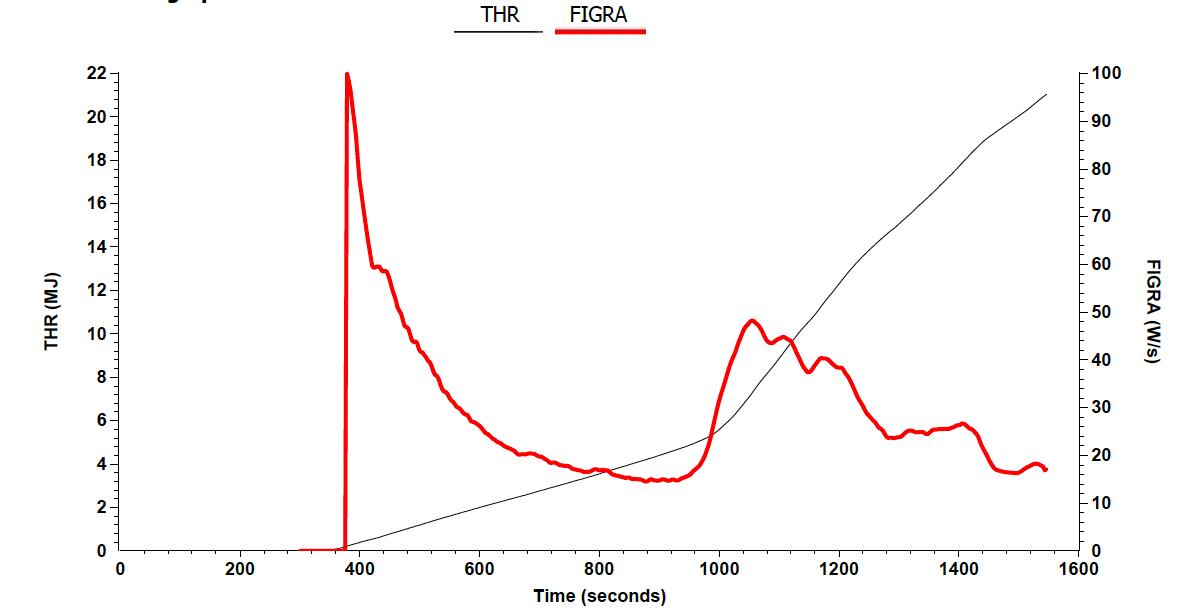 Le panneau homologué résistant au feu de Fog & Venø est classé comme produit EN 13823 / B-s1,d0. Le graphique suivant montre que le produit répond pleinement aux exigences - et a classification potentielle en tant que A2/B-s1,d0