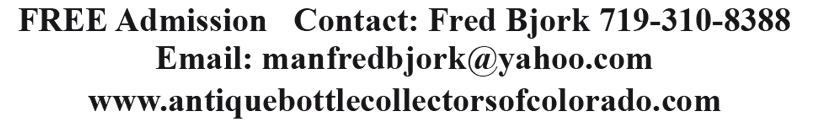 Affiliated Club Membership for only $75 with liability insurance for all club-sponsored events, 50% discount on advertising in Antique Bottle & Glass Collector, plus so much more, Contact: FOHBC Business Manager: Elizabeth Meyer, PO Box 1825, Brookshire, Texas 77423, 713.504.0628, fohbcmembers@ gmail.com