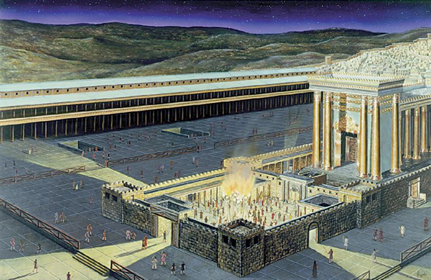 Looming atop Mount Moriah, Herod’s Temple was a mighty structure full of grandeur during Jesus’ time in Jerusalem, effectively displayed in this rendering by artist Stan Stein.