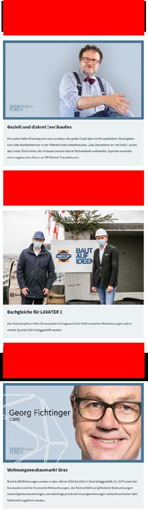 Der ImmoFokus berichtet täglich und informiert nachhaltig über das Geschehen aus der Immobilien- und Baubranche. Via Newsletter auch täglich in Ihrer Inbox.