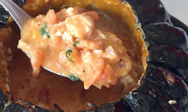 Tire a moranga do forno. Em seguida, forre o seu interior com o requeijão guardando um pouco para nalizar a receita. Acrescente o camarão. Acrescente o requeijão restante e polvilhe com queijo ralado a gosto. Leve ao forno para gratinar por cerca de dez minutos.