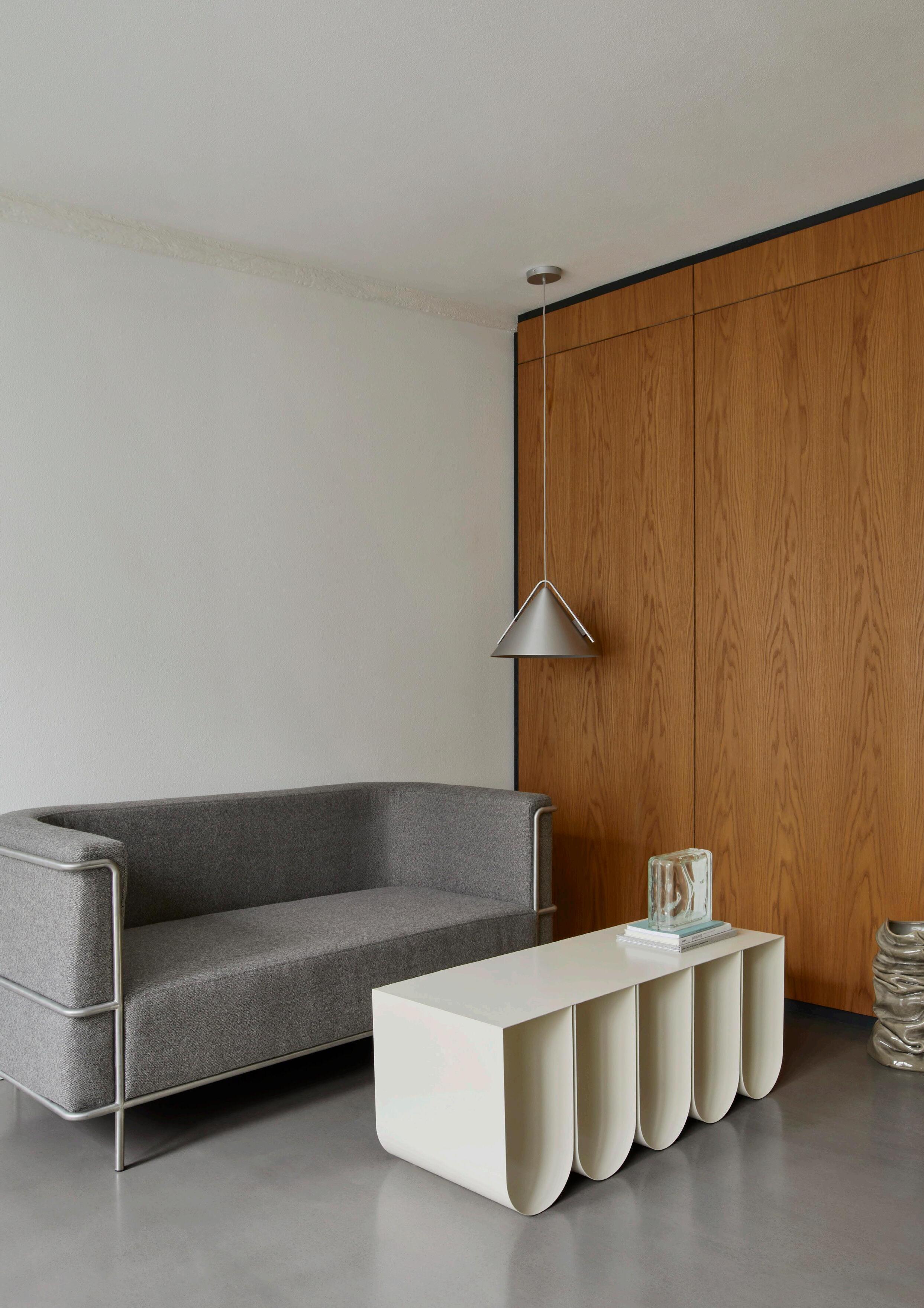 The architecture and materials of the apartment is the obvious setting for Kristina Dam Studio, where the common thread in all designs is simple and graphic. Furniture from Kristina Dam Studio is all made of natural and solid materials, and only the monochrome colour palette or the natural colour of the materials is used. The Bauhaus table with the Collector chair perfectly complements the apartment’s materials, and the Modernist sofa brings tactility to the living room and the beautiful oak panels.