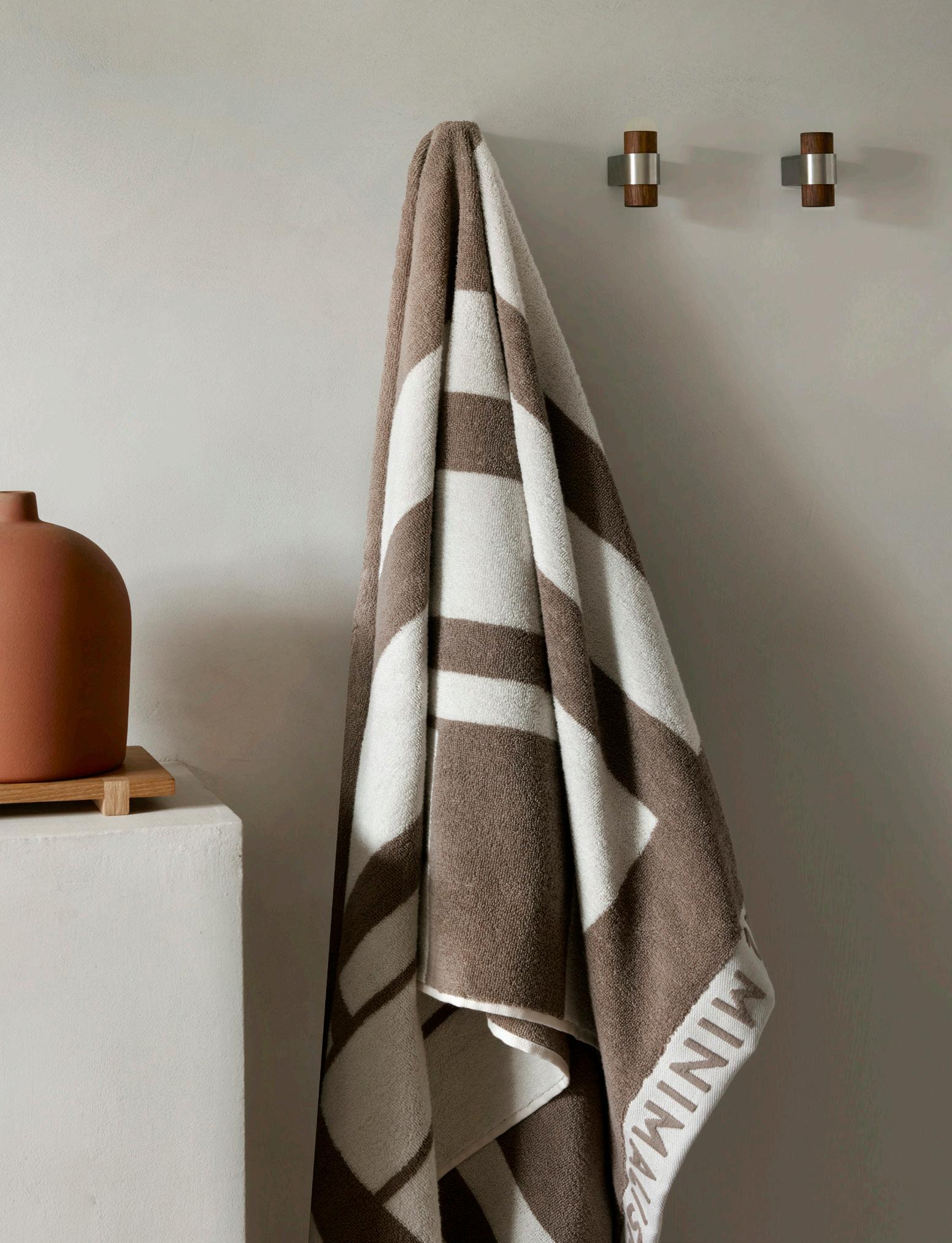 The Minimal Towel series combines graphic design, function, and quality in covetable towels uniquely designed to be luxurious and longlasting. Each towel looms from premium, long-staple cotton fibres that offer exceptional absorbency. The collection is certified OEKO-TEX®, which guarantees that it is crafted safe and socially responsible from materials tested for harmful substances with environmentally friendly processes. The towel is created in three sizes: a small for the hands, a large for the body, and a bold statement towel for the beach.