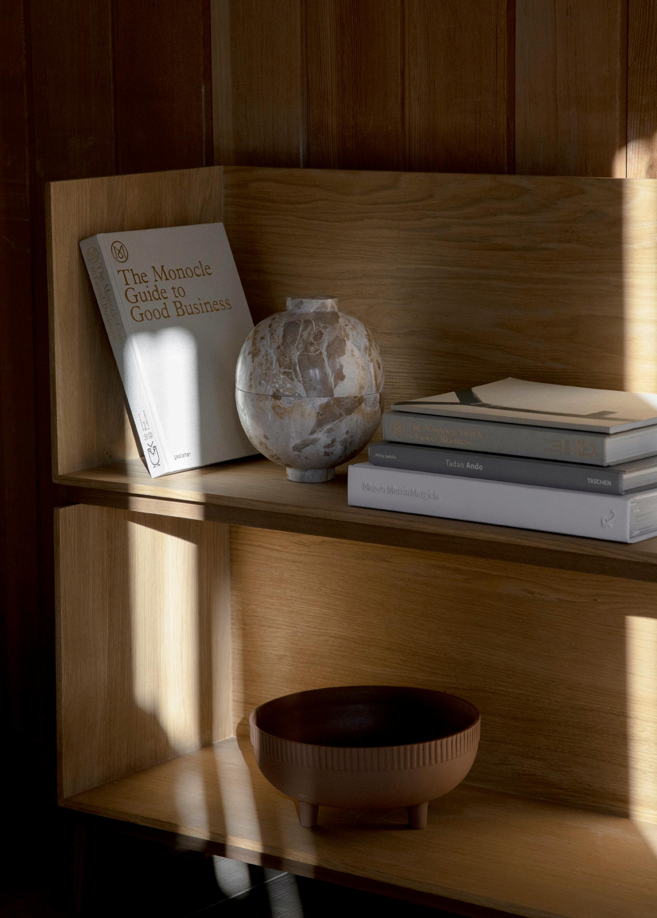 XL MARBLE SPHERE Item: 200200204 Material: Capri Beige Marble Size: Ø16 x H18 cm XL WOODEN SPHERE Item: 125100600 Material: Neutral Oiled Oak Size: Ø16 x H18 cm XL WOODEN SPHERE Item: 125100400 Colour: Black Material: Lacquered Oak Size: Ø16 x H18 cm WOODEN SPHERE Item: 125000100 Material: Neutral Oiled Oak Size: Ø12 x H15 cm WOODEN SPHERE Item: 125000200 Colour: Black Material: Lacquered Oak Size: Ø12 x H15 cm WOODEN GALAXY Item: 125000400 Material: Neutral Oiled Oak Size: Ø16 x H7 cm WOODEN GALAXY Item: 125100200 Colour: Black Material: Lacquered Oak Size: Ø16 x H7 cm JEWELLERY DISPLAY Item: 400400457 Material: Oiled Oak Size: Ø18 x H5,5 cm JEWELLERY DISPLAY Item: 400400458 Material: Oiled Walnut Size: Ø18 x H5,5 cm BOOK KEEPER Item: 129200100 Colour: Black Material: Powder Coated Steel Size: W27 x L38 cm BOOK KEEPER Item: 129200200 Colour: Beige Material: Powder Coated Steel Size: W27 x L38 cm