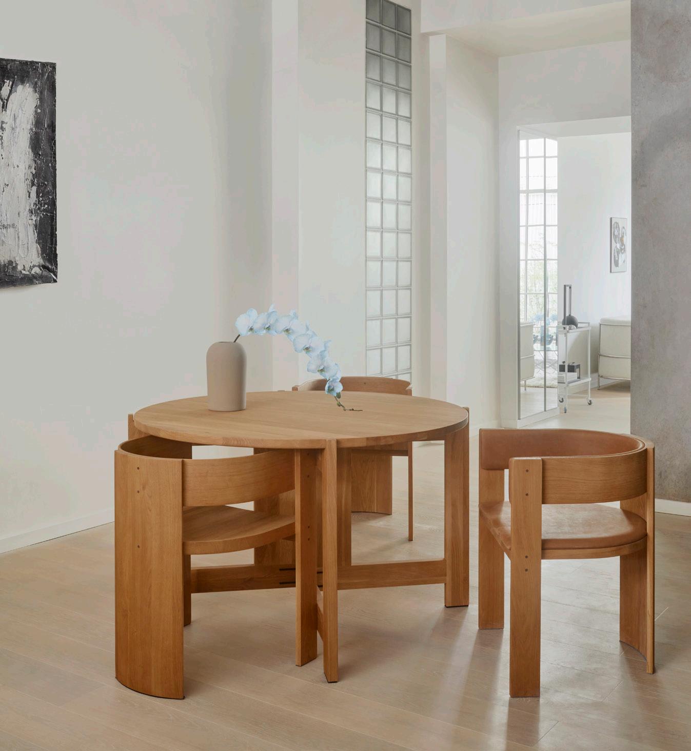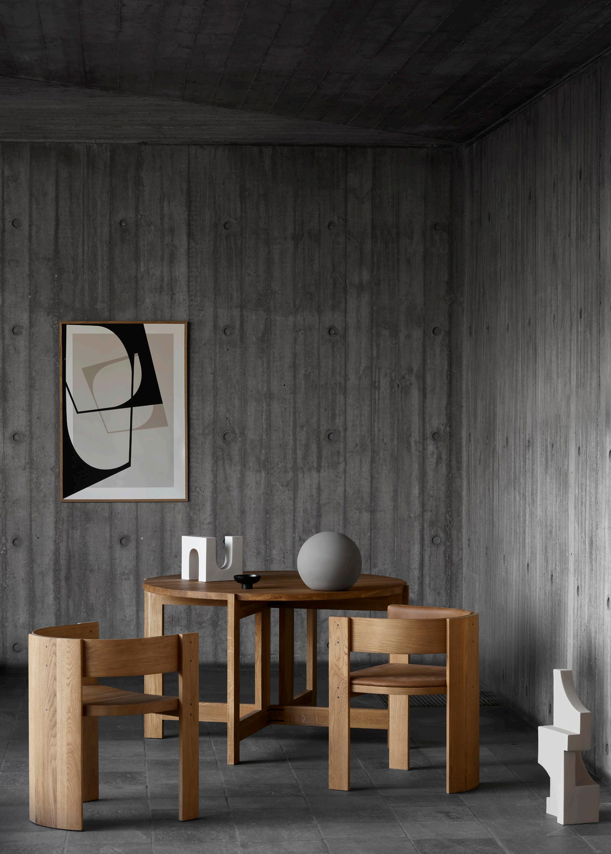 COLLECTOR DINING CHAIR Item: 400400422 Material: Oiled Oak Size: W57 x L51 x H72 x SD46 x SH46 cm COLLECTOR DINING CHAIR Item: 400400423 Material: Oiled Oak/Nubuck Leather Size: W57 x L51 x H72 x SD46 x SH46 cm COLLECTOR DINING TABLE Item: 400400421 Material: Oiled Oak Size: Ø120 x H74 cm 12 0 46 57 46