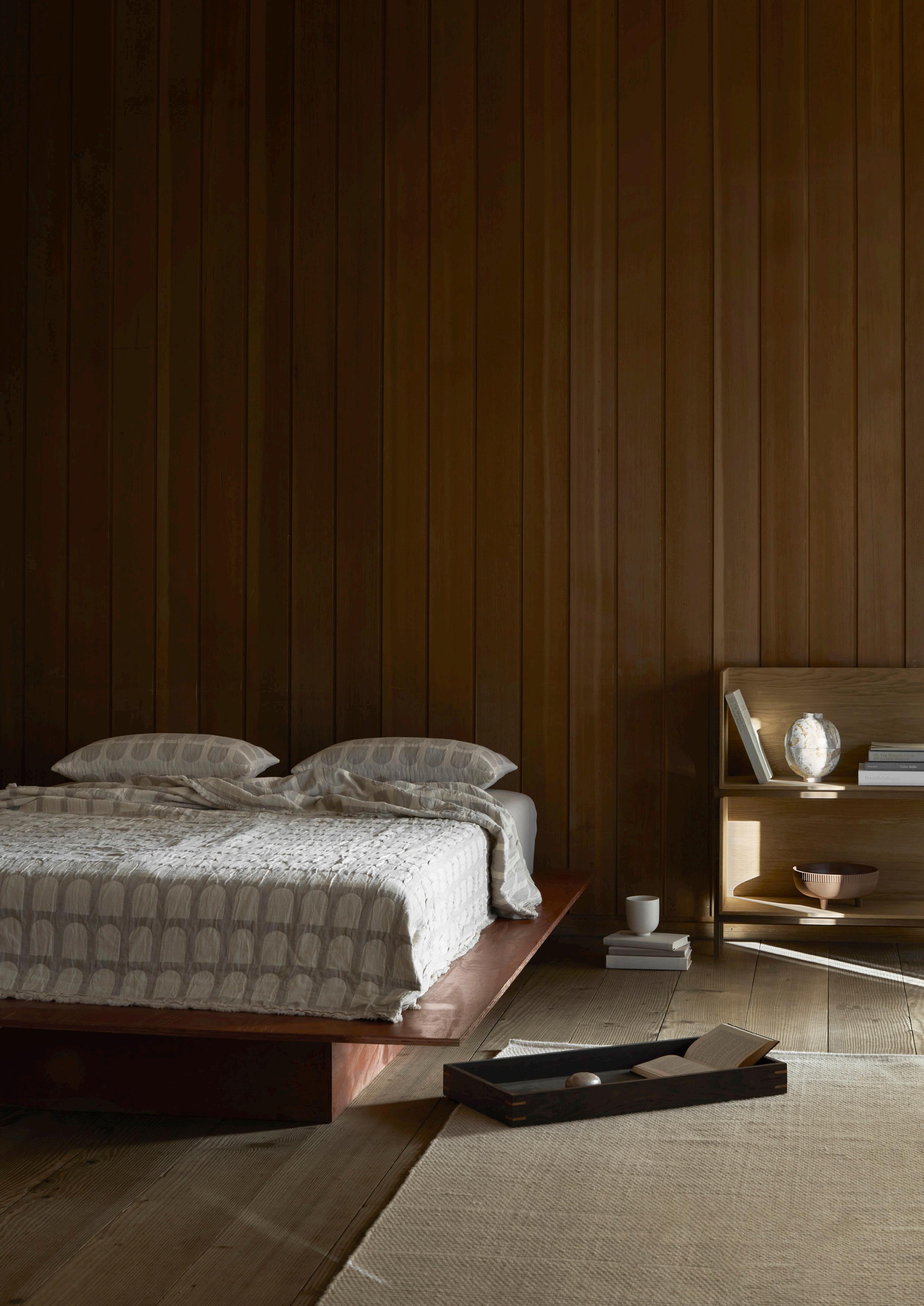 Japanese principles inspire the Minimal series. The pared-back construction emphasizes the quality of craftsmanship and the simple elegance of the solid natural oak and the modern black frame. The interplay between the wooden frame and the slim cover adds a sense of exquisite ease to the indispensable pieces – a daybed and a bench. The soft foam mattress comes upholstered with Aniline leather, Nubuck leather, or Savak made from wool in earthy tones that reference the 1960s.