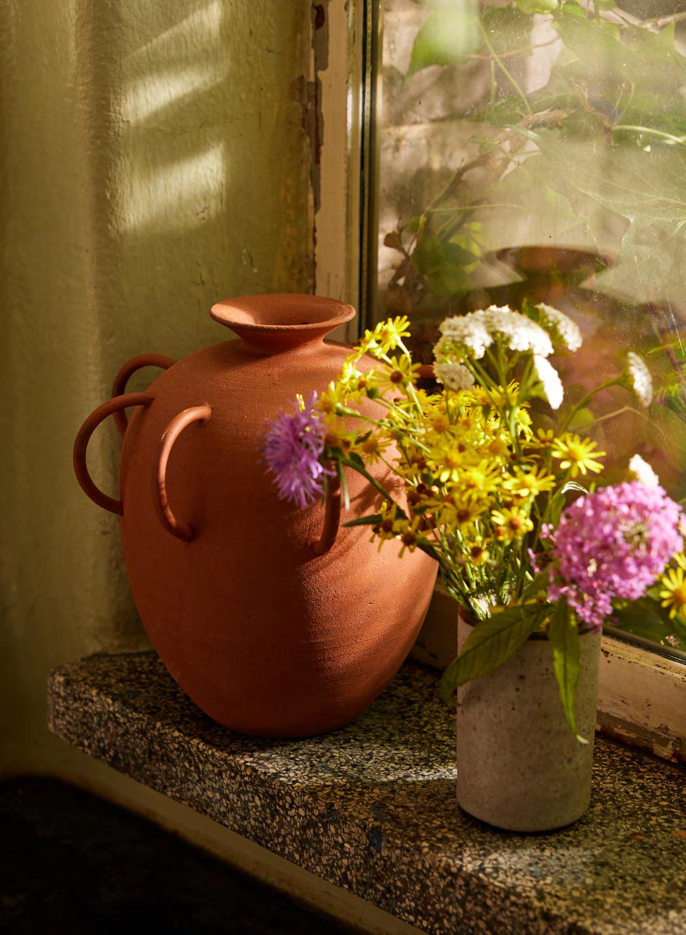 HK OBJECTS TERRACOTTA VASE WITH HANDLES ACE7170 | 20x20x20,5cm