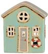 27619-35 /Min. 6 pcs House f/tealight Løkken beige w/turquoise door W7.5 H10 L8 cm