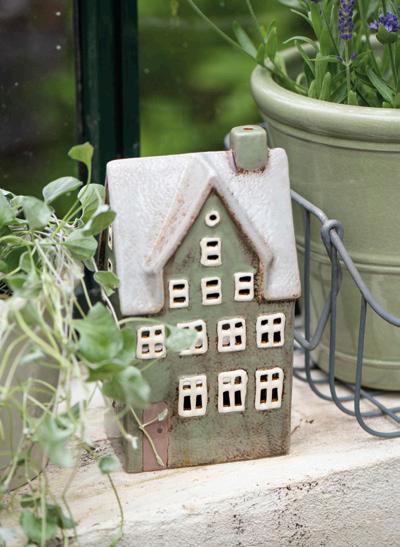 27622-72 /Min. 6 pcs House f/tealight Løkken mint green w/grey roof W7.5 H10 L8 cm