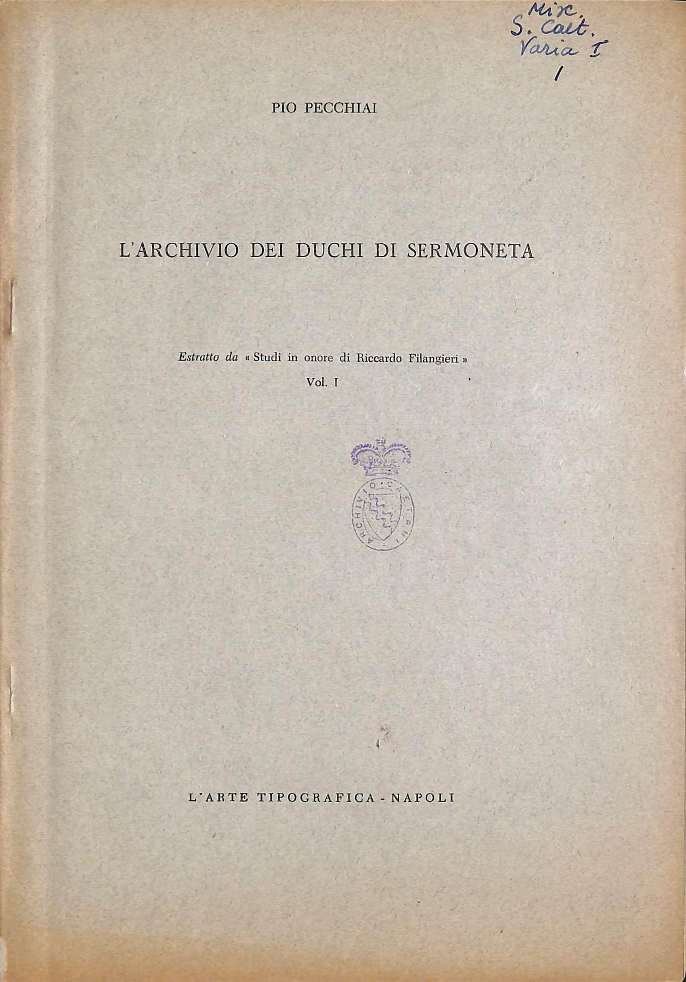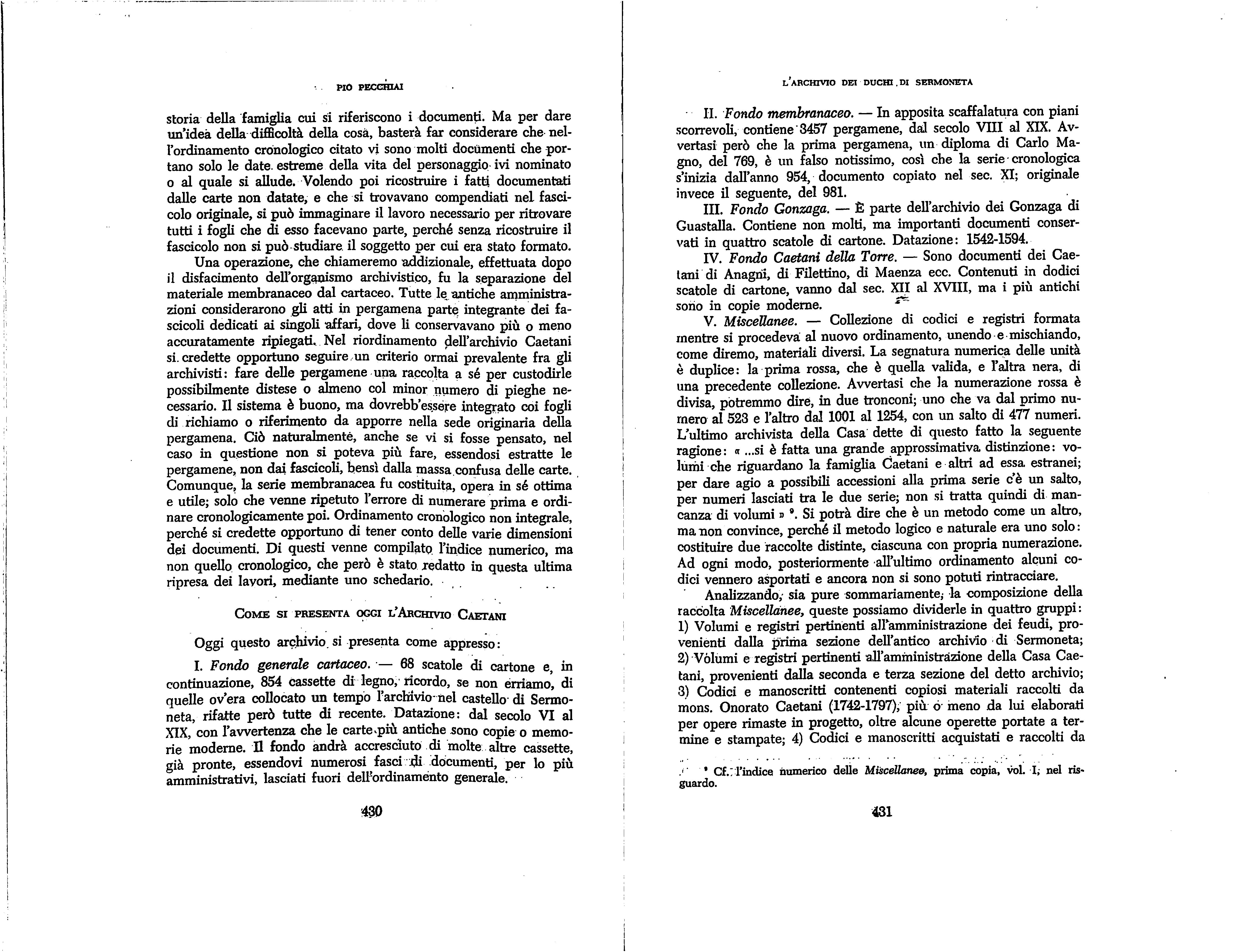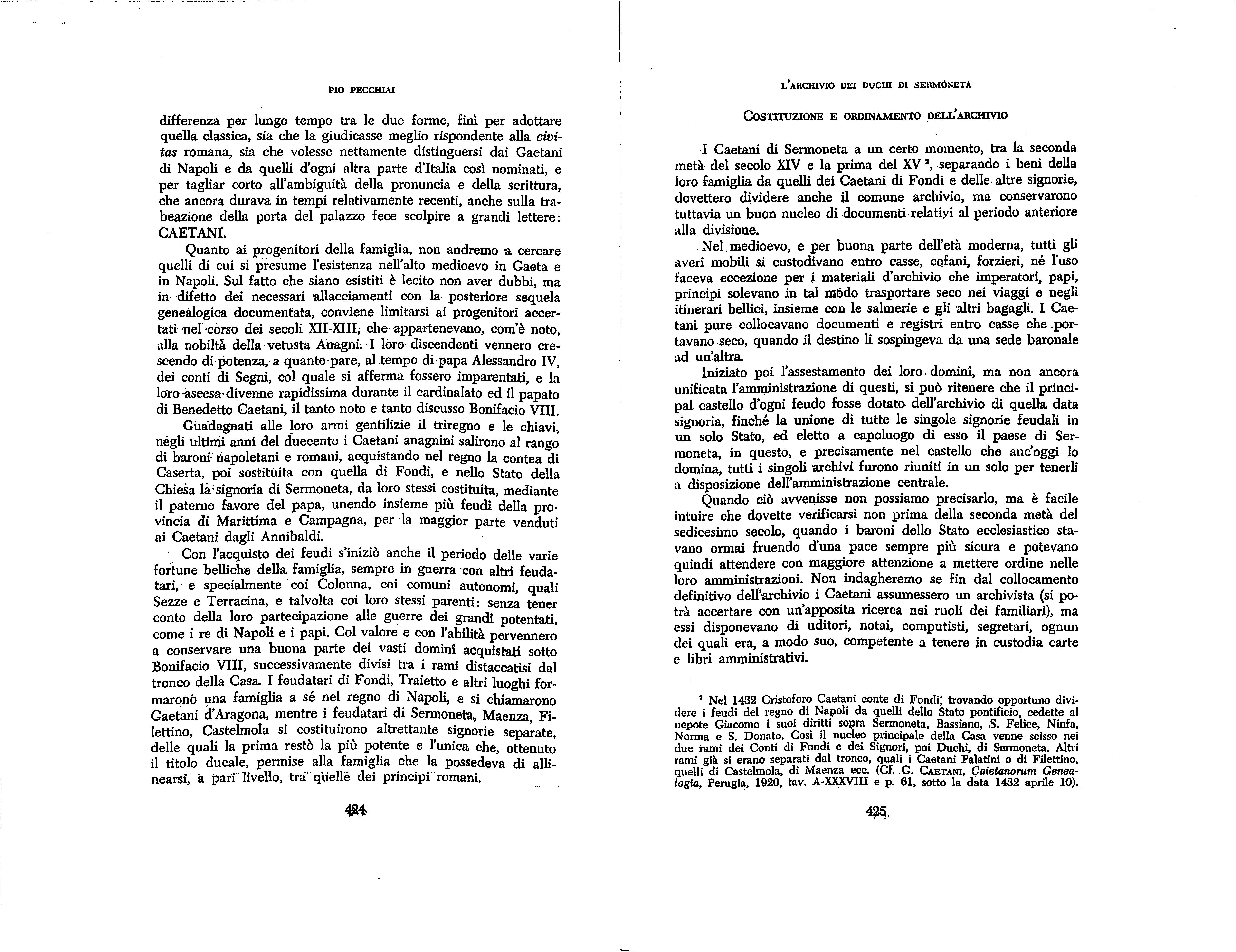 Pio Pecchiai, L'archivio dei Duchi di Sermoneta