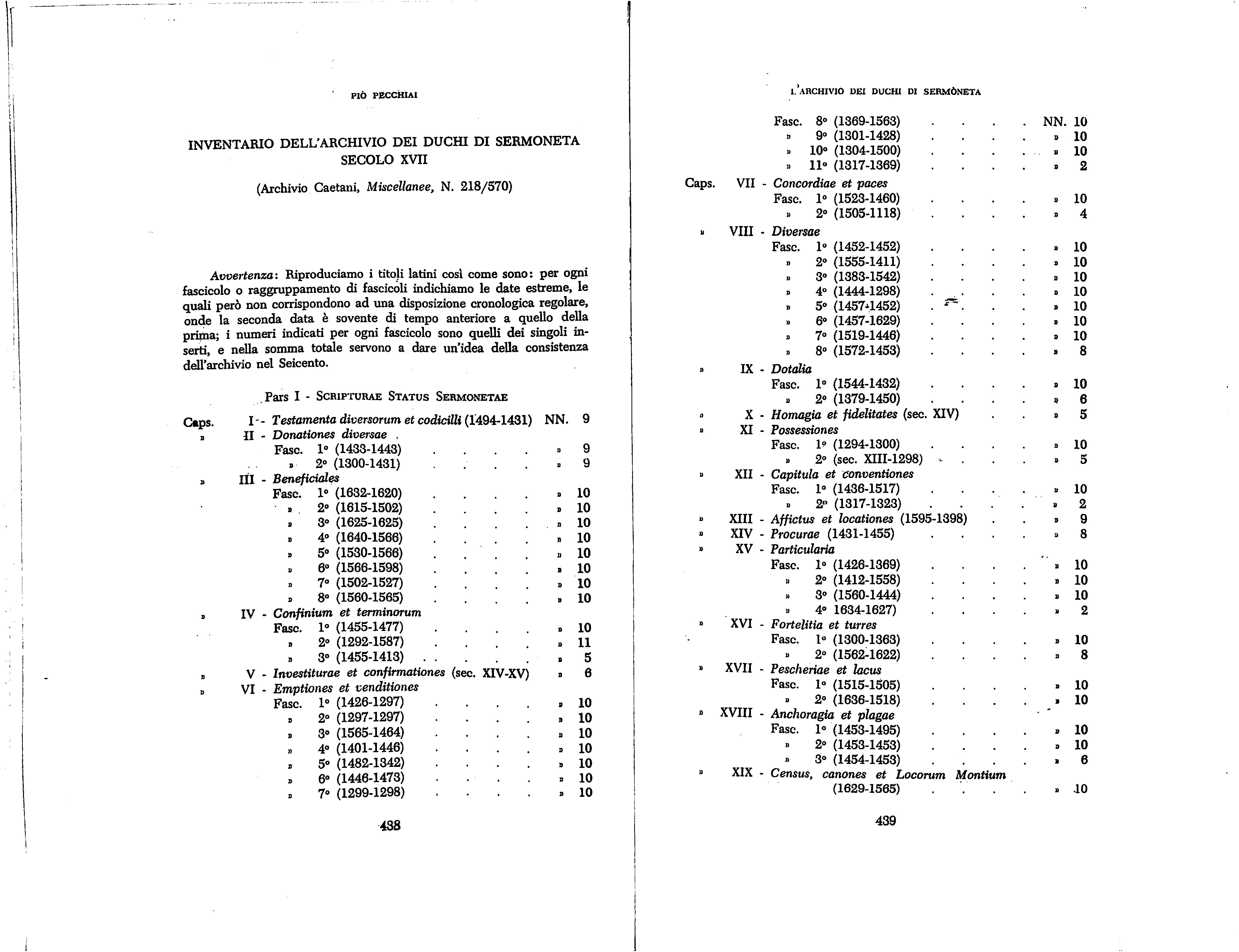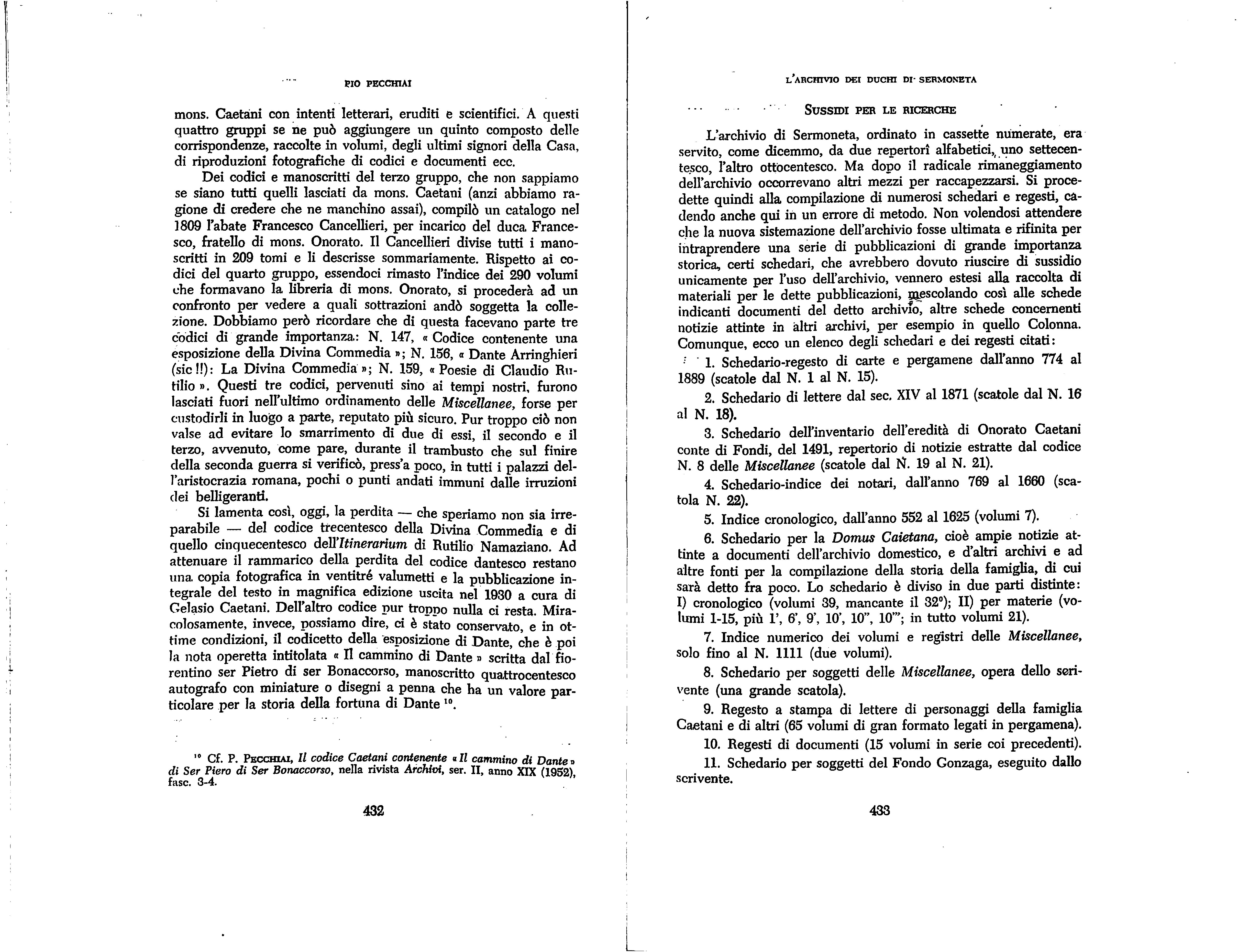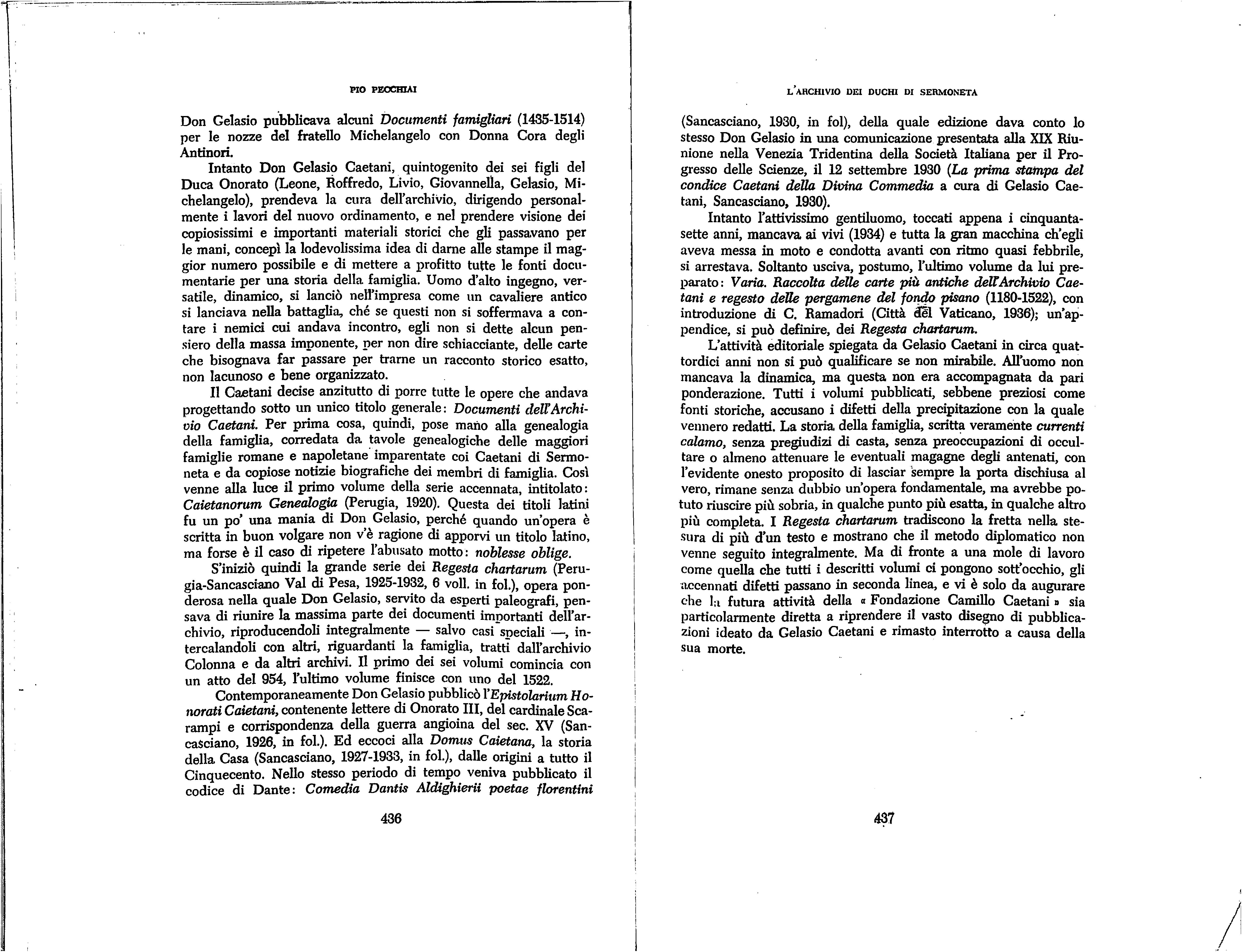 Pio Pecchiai, L'archivio dei Duchi di Sermoneta