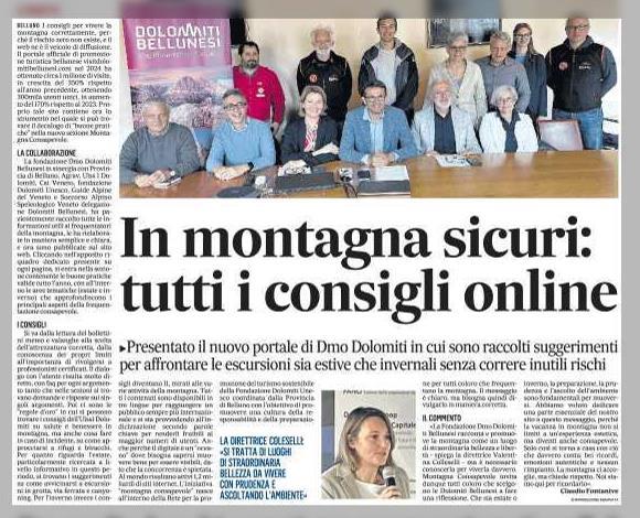 TGR Veneto | 15 maggio 2025 https://www.rainews.it/tgr/veneto/video/2025/05/visitare-dolomiti-bellunesi-in-sicurezza-grazie-a-decalogo-online-montagnaconsapevole-890fd6ae-8080-4a06-a990-6d73dc1d63cb.html?nxtep