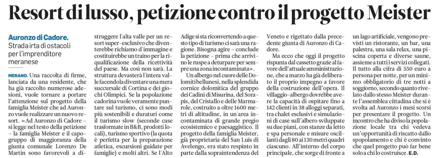 facciamo, causeremo danni permanenti e irreparabili alle nostre montagne», dice Zelger, che conclude: «Conservare e rinnovare, ma non espandere! Le risorse e il paesaggio hanno una capacità di carico limitata, abbiamo raggiunto il limite da tempo». DA.PA