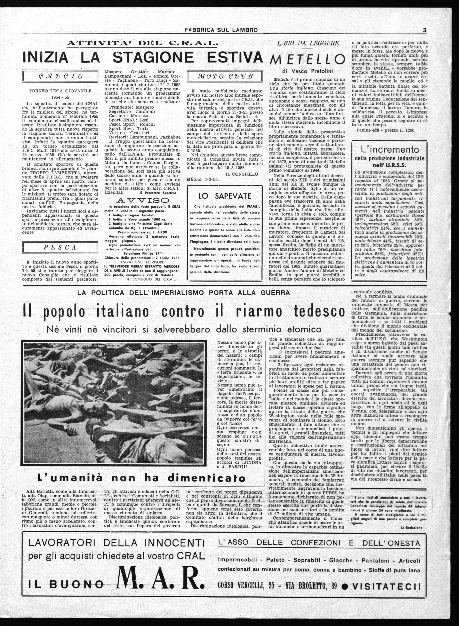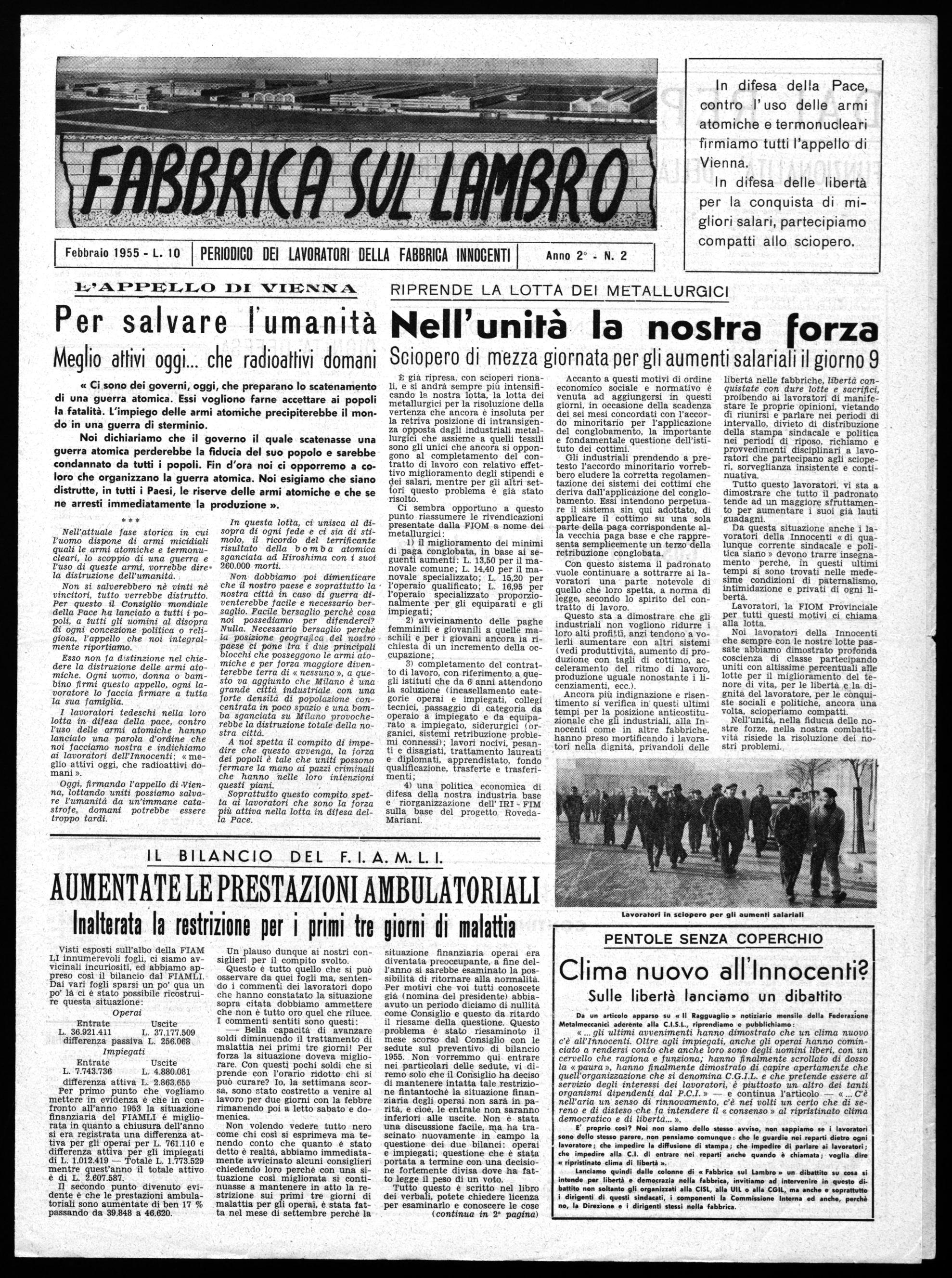 Febbraio 1955 - L. 10 PERIODICO DEI LAVORATORI DELLA FABBRICAINNOCENTI I Anno 2' - N. 2