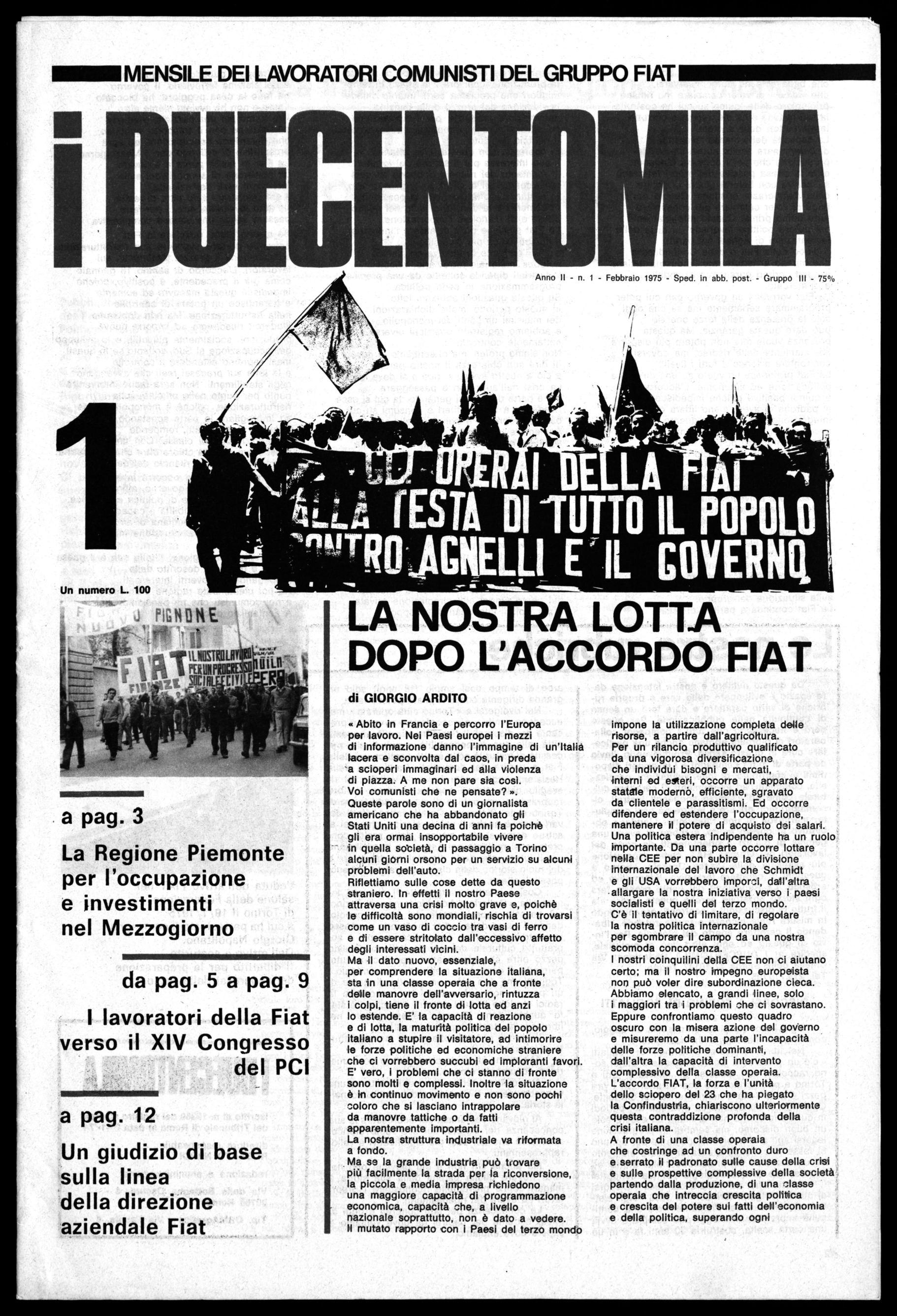 Ci pare importante sottoporre questa iniziativa all'attenzione dei lavoratori della Fiat poichè il recente accordo richiede, per una gestione piena, un movimento di lotta che si sviluppi a tutti i livelli, ed il pieno appoggio dei lavoratori stessi.
