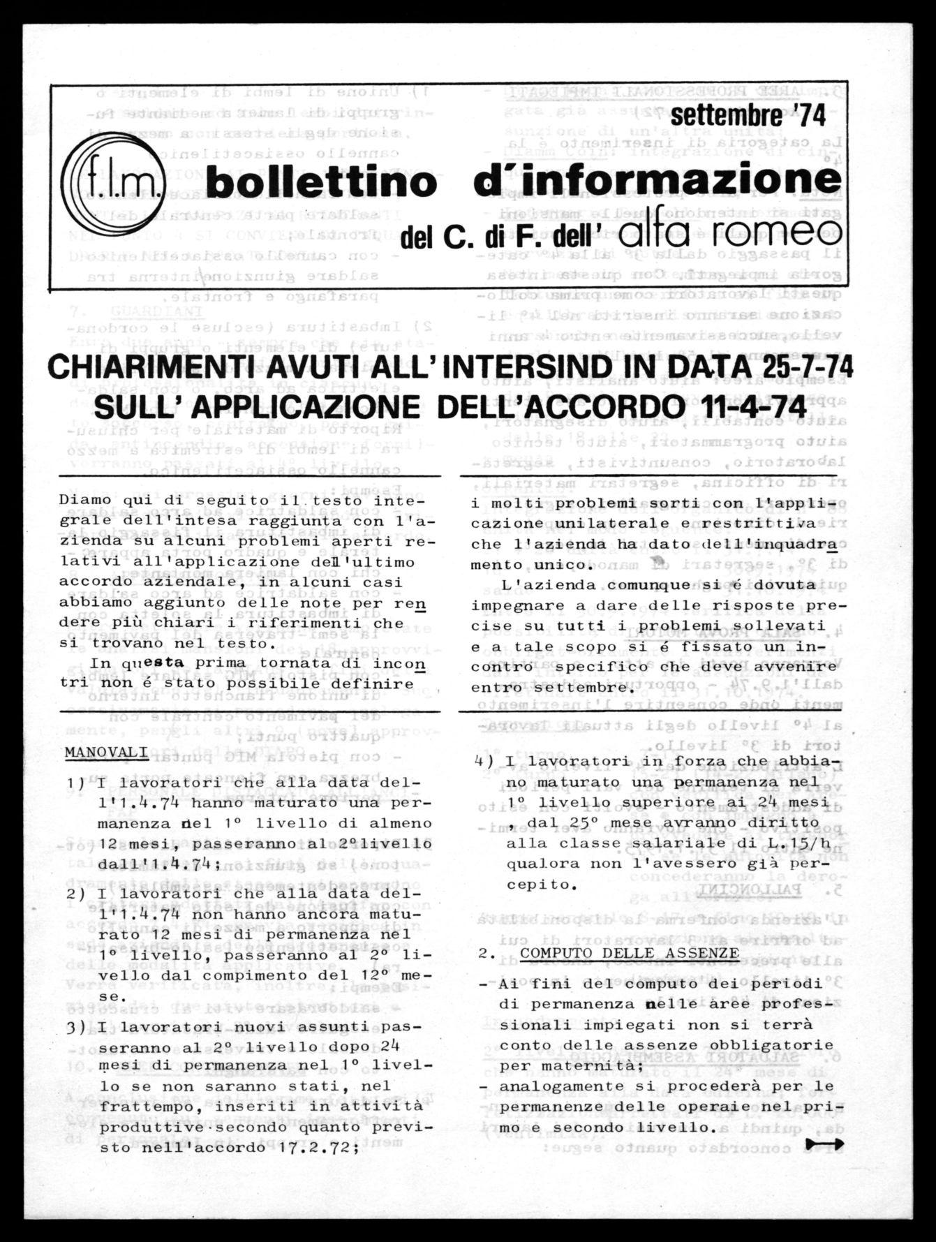 bollettino d'informazione del C. di F. dell ' alfa romeo