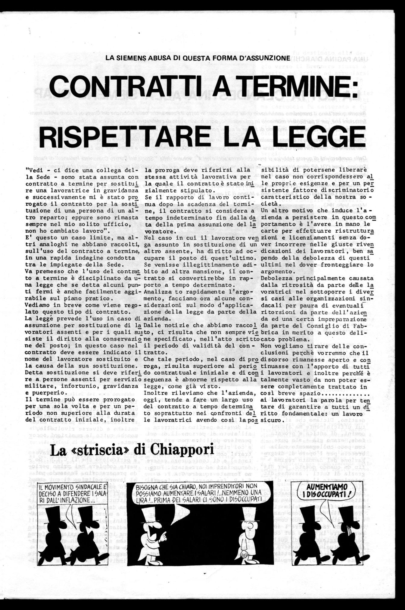 E' questo un caso limite, ma altri analoghi ne abbiamo raccolti, sull'uso del contratto a termine, in una rapida indagine condotta tra le impiegate della Sede.