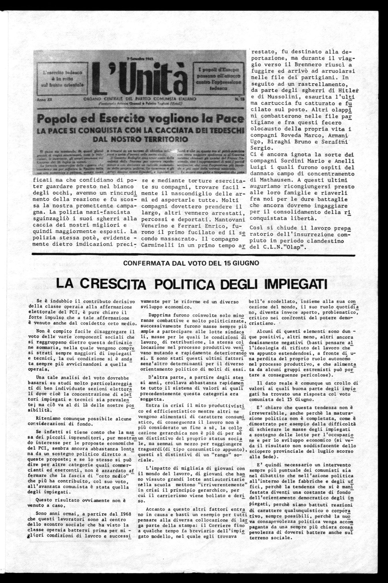 Pagina seguente: Un'edizione dell'Unità clandestina.