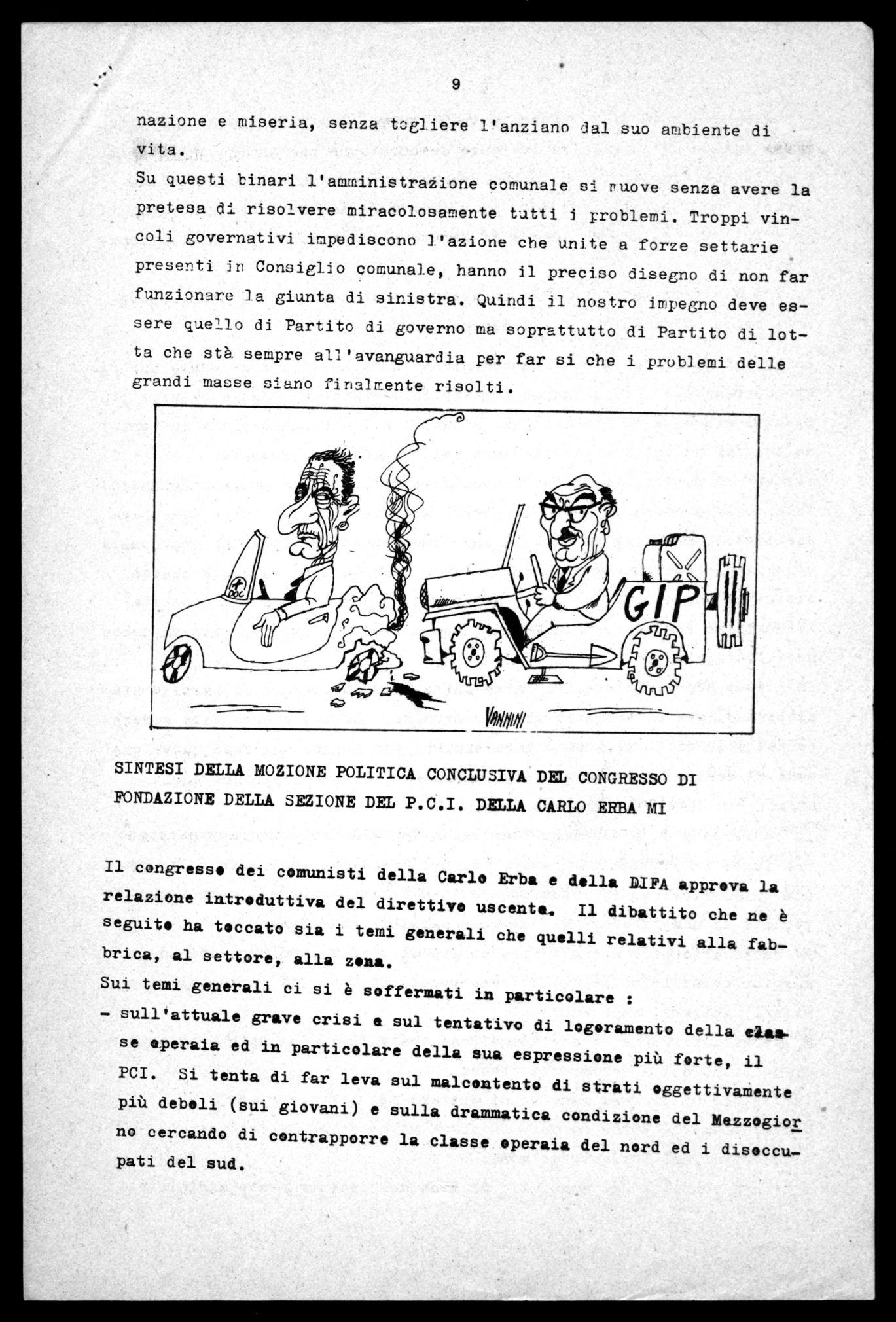 SINTESI DELLA MOZIONE POLITICA CONCLUSIVA DEL CONGRESSO DI FONDAZIONE DELLA SEZIONE DEL P.C.I. DELLA CARLO ERBA MI