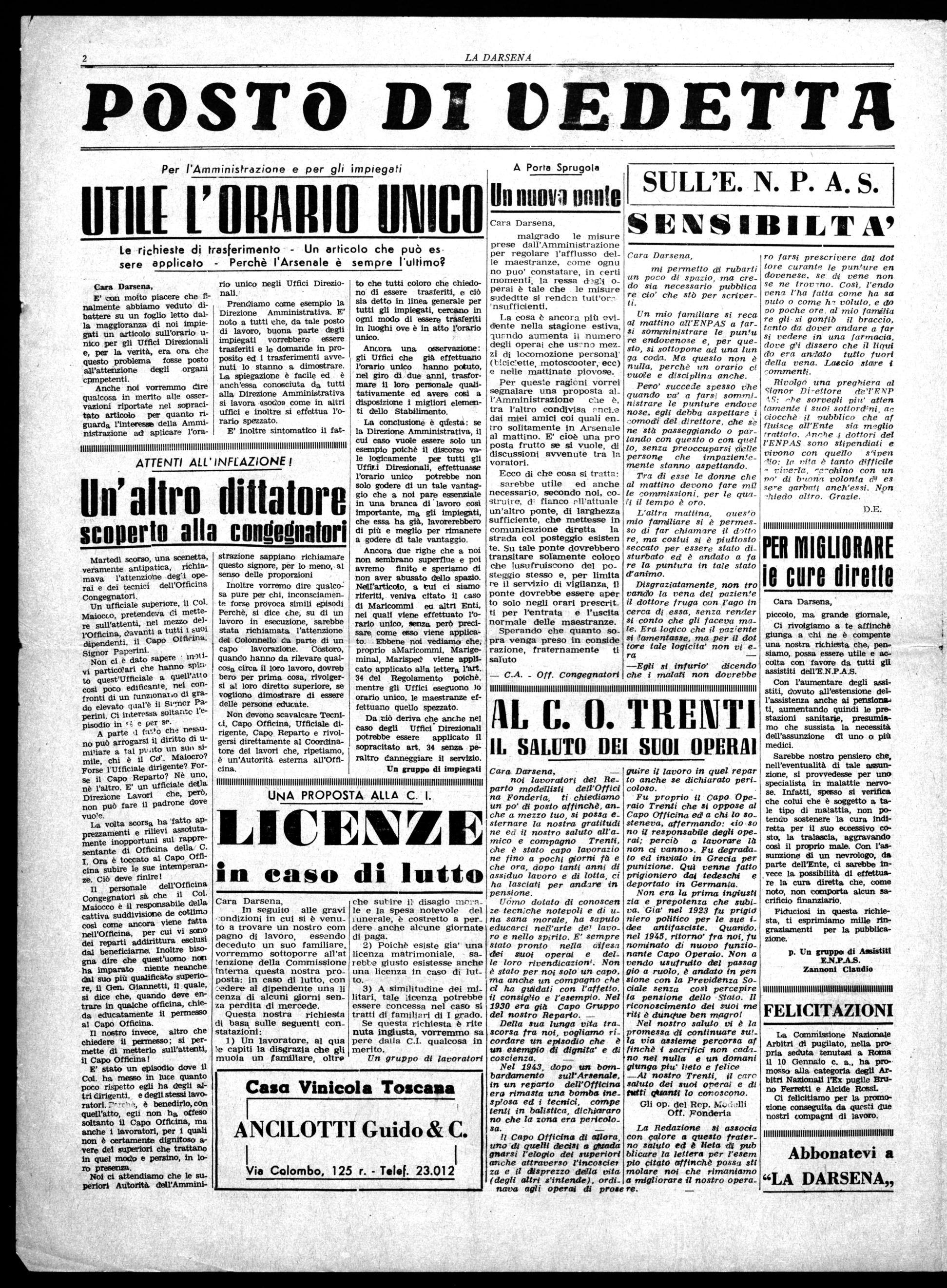 Cara Darsena, malgrado le misure prese dall'Amministrazione per regolare l'afflusso del_ le maestranze. come ognu no puo' constatare, in certi momenti, la ressa d3g:1 o_ pera' è tale che le misure s'idedtte si rendcn tutt'ornsufficienti.