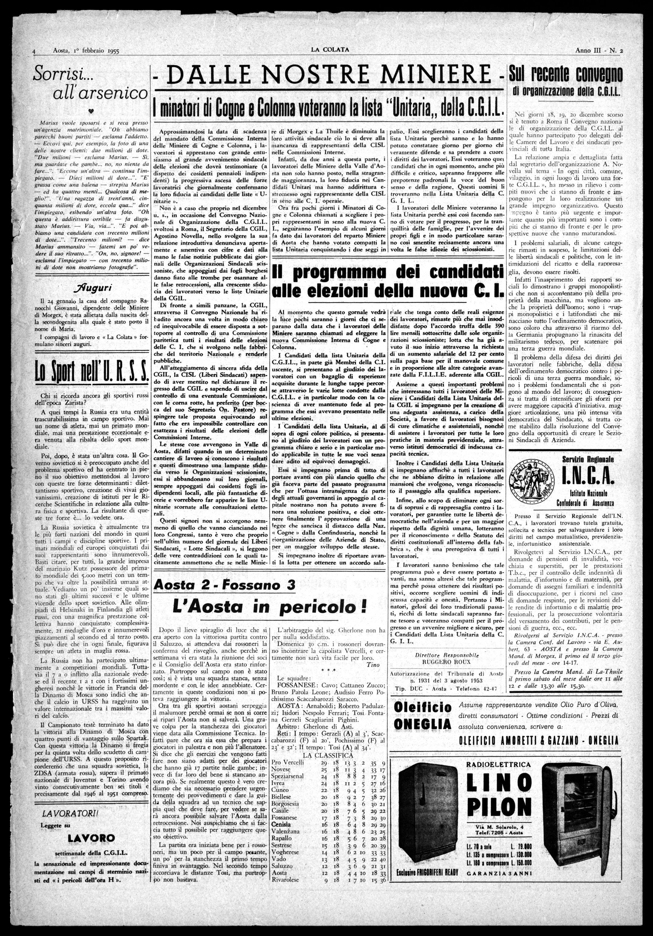,Giorni or sono, e precisamente ma L'edì 25 gennaio '55, mi trovavo tranquillamente seduto sul pullman che ogni giorno mi trasporta dal luogo di lavoro a quello di residenza e viceversa, quando un collega di lavoro, come me piantone di spogliatoio, mi invitava a leggere un articolo de "La Stampa", e non posso nascondere il mio indignato stupore per ciò che sembra abbia detto il Signor Pollicini alla Commissione C.E.C.A. in visita al nostro Stabilimento.