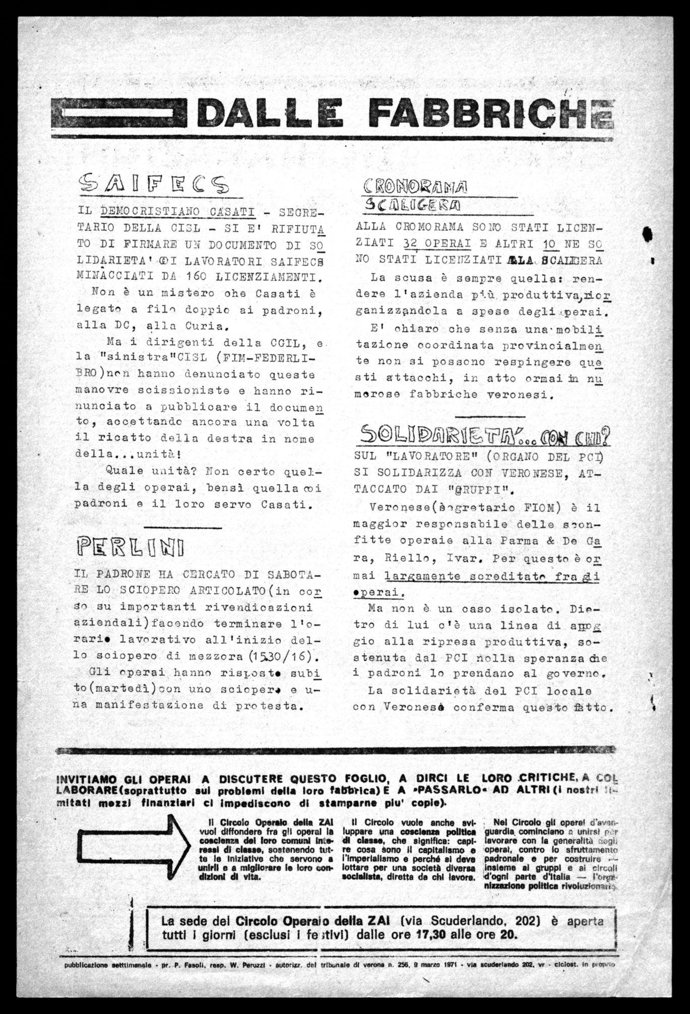 INVITIAMO GLI OPERAI A DISCUTERE QUESTO FOGLIO, A DIRCI LE LORO CRITICHE. LABORARE(soprattutto sui problemi della loro fabbrica) E A *PASSARLO.. AD ALTRI (i nos:?i mltati mezzi finanziari ci Impediscono di stamparne plu' copie).