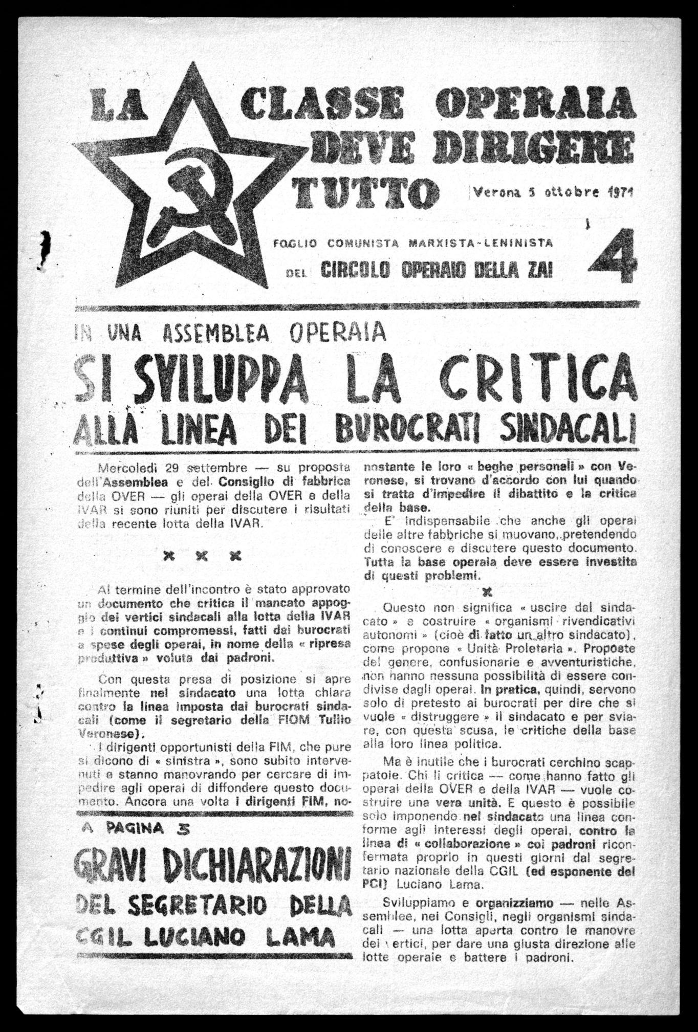 Nel Circolo gli operai d'avanguardia cominciano unirsi Nr lavorare con la generalità ziegli operai, contro io sfruttamento padronale e per costruire insieme ai gruppi e ai circoli ,d'ogni parte d'Italia — nizzazIone politica rivoluzionar4.