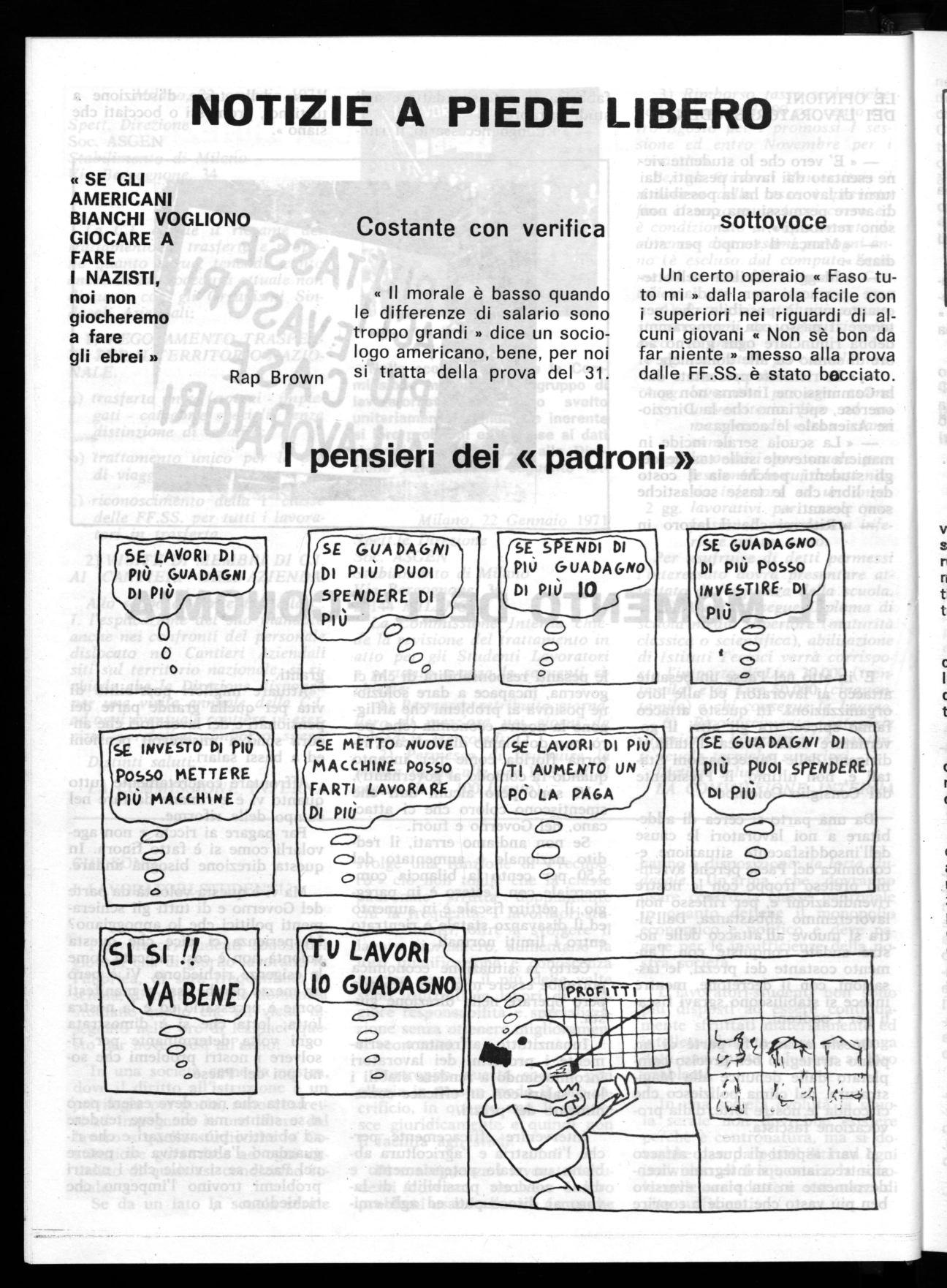 hanno a disposizione: la lotta sindacale. Un'arma che dovranno usare contro la classe padronale in quanto detiene il monopolio economico e politico e deve pagare per le insufficienze della nostra società.