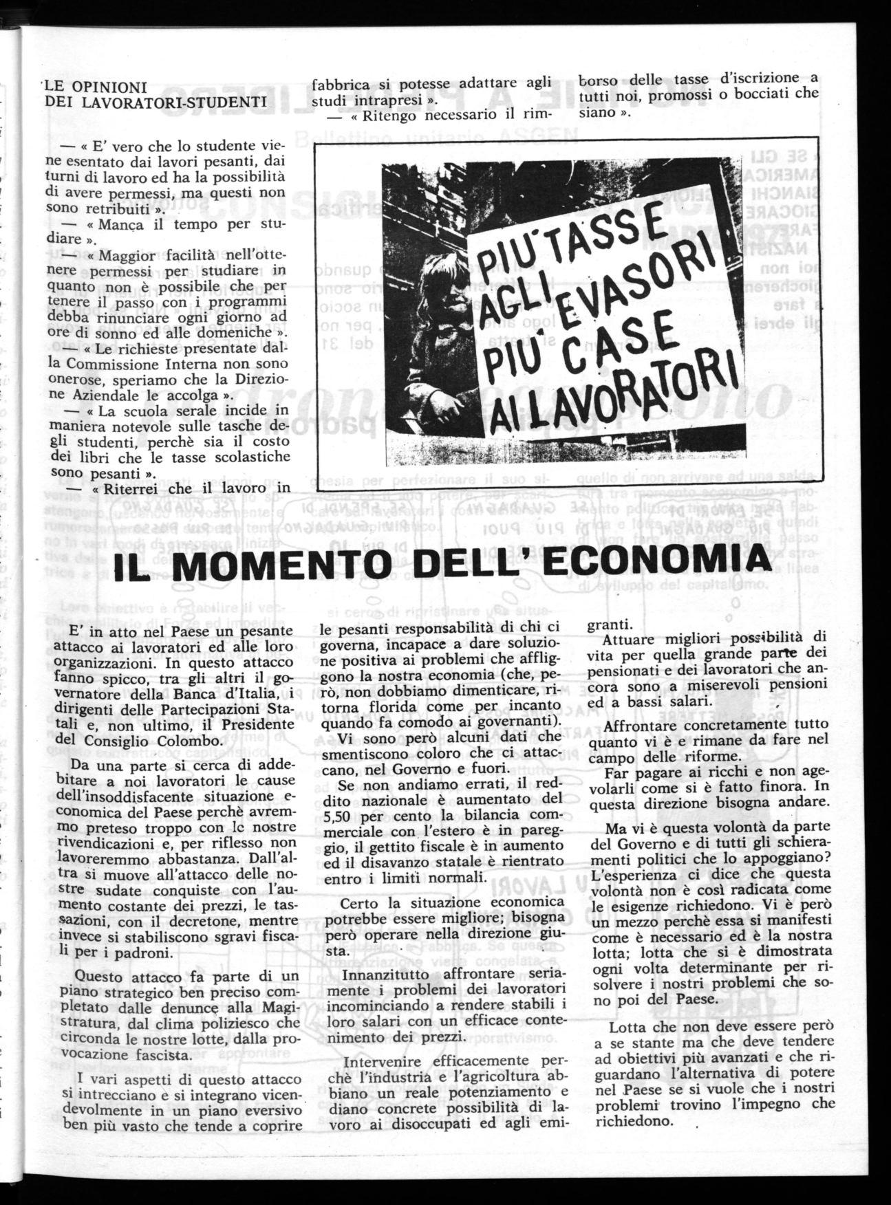 svolge una funzione di « recupero » ciò non toglie che la classe padronale sfrutta doppiamente chi la frequenta. I lavoratori-studenti, infatti, oltre a svolgere il lavoro giornaliero, aumentano la loro qualificazione e conoscenza teorica per cui il più delle volte sono utilizzati in lavori di maggiore responsabilità e specializzazione senza ottenere miglioramenti economici.