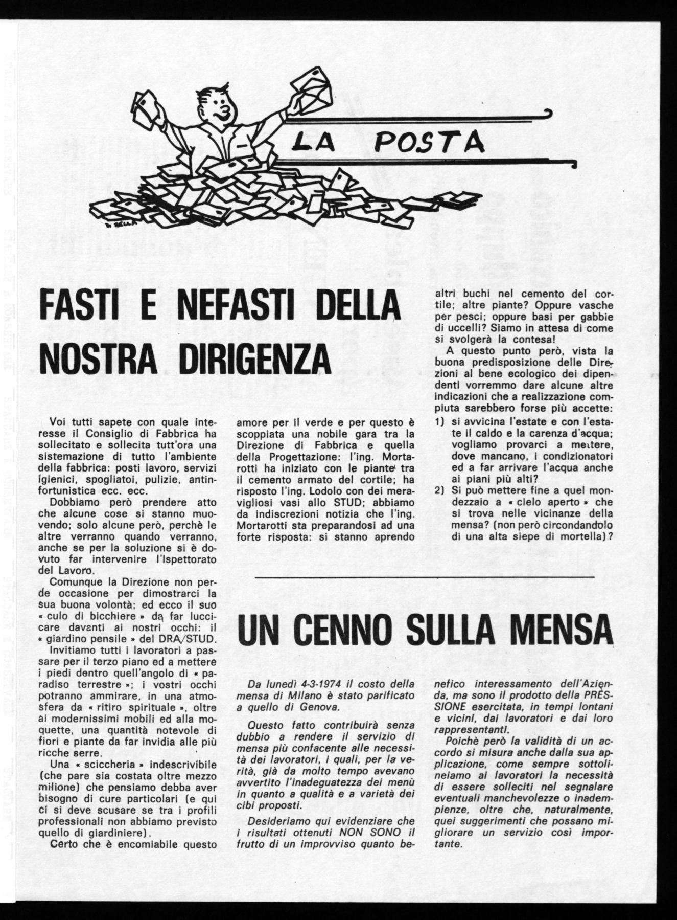 Da lunedì 4-3-1974 il costo della mensa di Milano è stato parificato a quello di Genova.