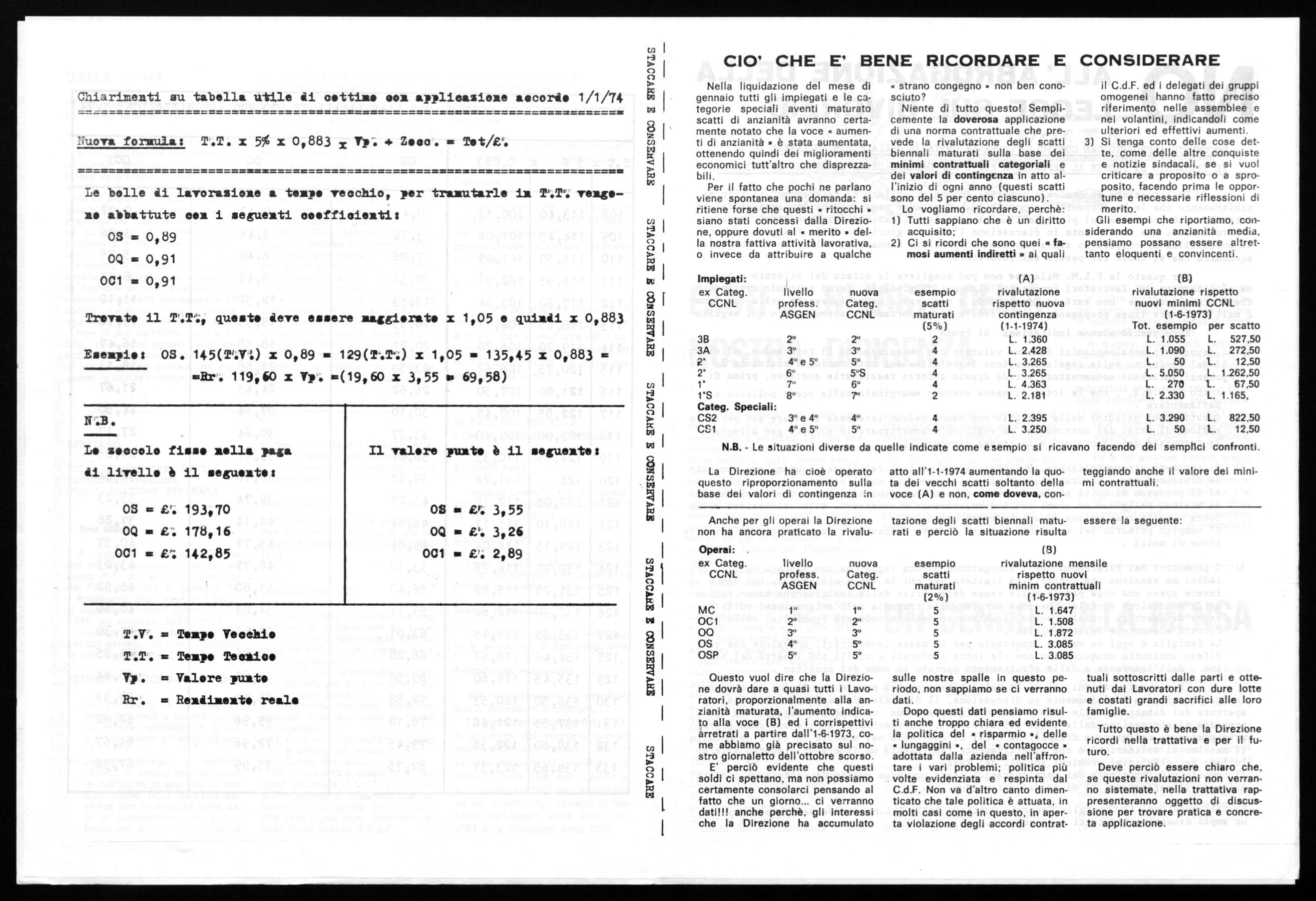 A seguito dell'armonizzazione dei Cottimi, pagamento di un acconto di L. 20 per le ore lavorate dal Febbraio 1973 al gennaio '74.