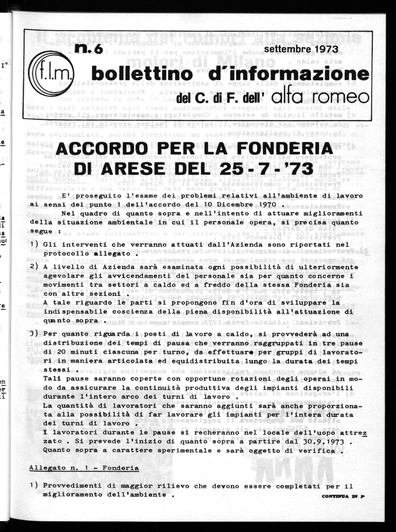 ACCORDO PER LA FONDERIA DI ARESE DEL 25 7 -'73