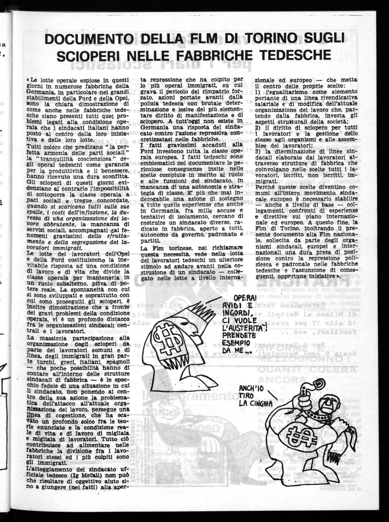 Perché queste scelte diventino comuni all'intero movimento sindacale europeo è necessario stabilire — anche a livello di base — collegamenti, confronti di esperienze e direttive sul piano Internazionale ed europeo. A questo fine, la Flin" di Torino, inoltrando il Presente documento alla Flm nazionale, sollecita da parte degli 'orgenisml sindacali europei e internazionali una dura presa dl posizione contro la repressione poliziesca e padronale nelle fabbriche tedesche e l'assunzione di conseguenti, oppertune iniziative s.