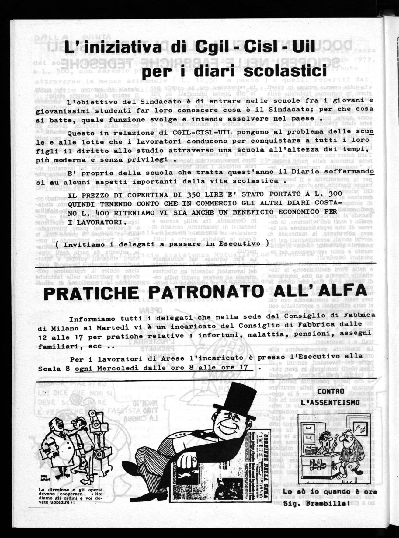 Informiamo tutti i delegati che nella sede del Consiglio di Fabbrica di Milano al Martedì vi è un incaricato del Consiglio di Fabbrica dalle 12 alle 17 per pratiche relative s infortuni, malattia, pensioni, assegni familiari, ecc ..