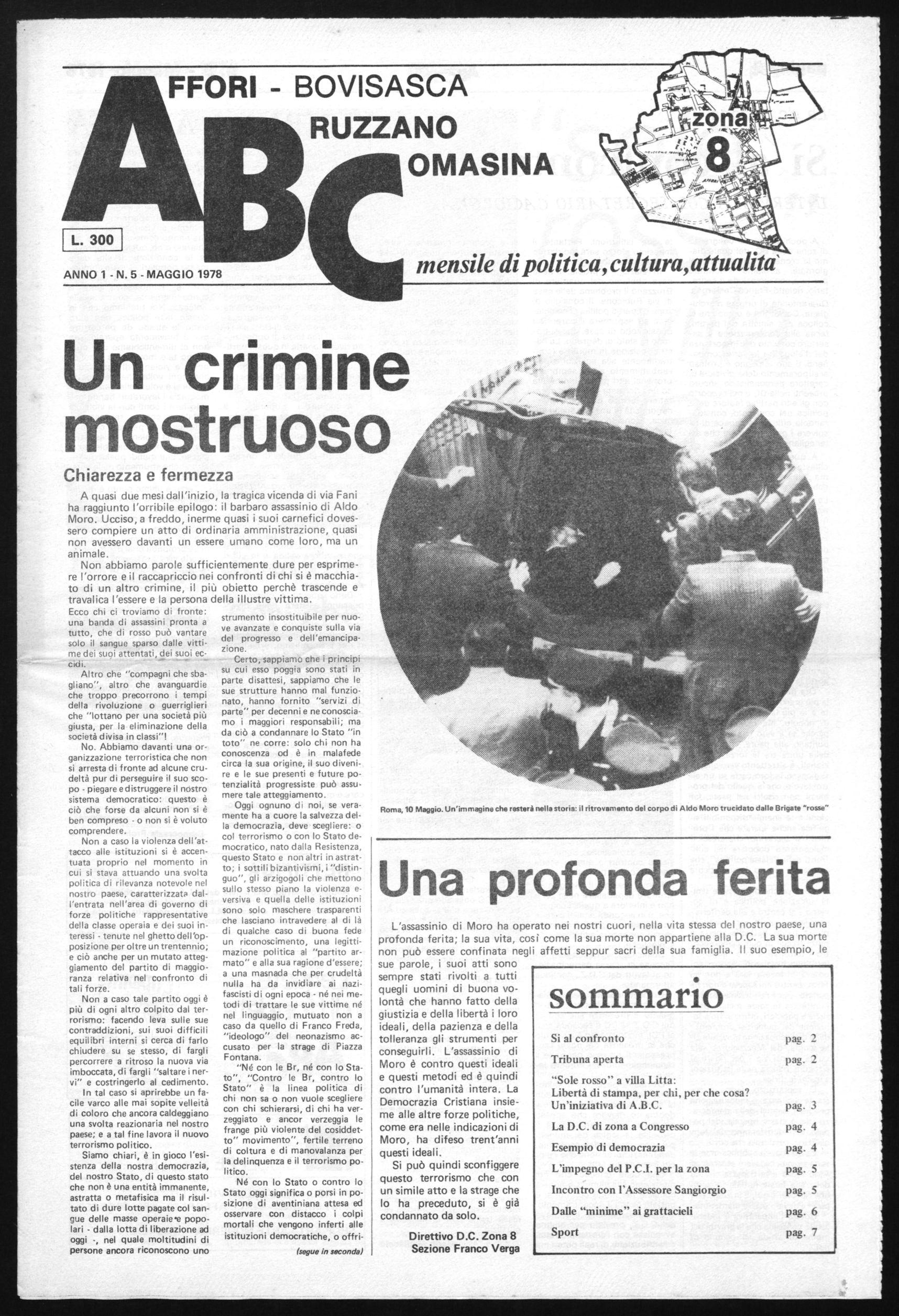 A quasi due mesi dall'inizio, la tragica vicenda di via Fani ha raggiunto l'orribile epilogo: il barbaro assassinio di Aldo Moro. Ucciso, a freddo, inerme quasi i suoi carnefici dovessero compiere un atto di ordinaria amministrazione, quasi non avessero davanti un essere umano come loro, ma un animale.
