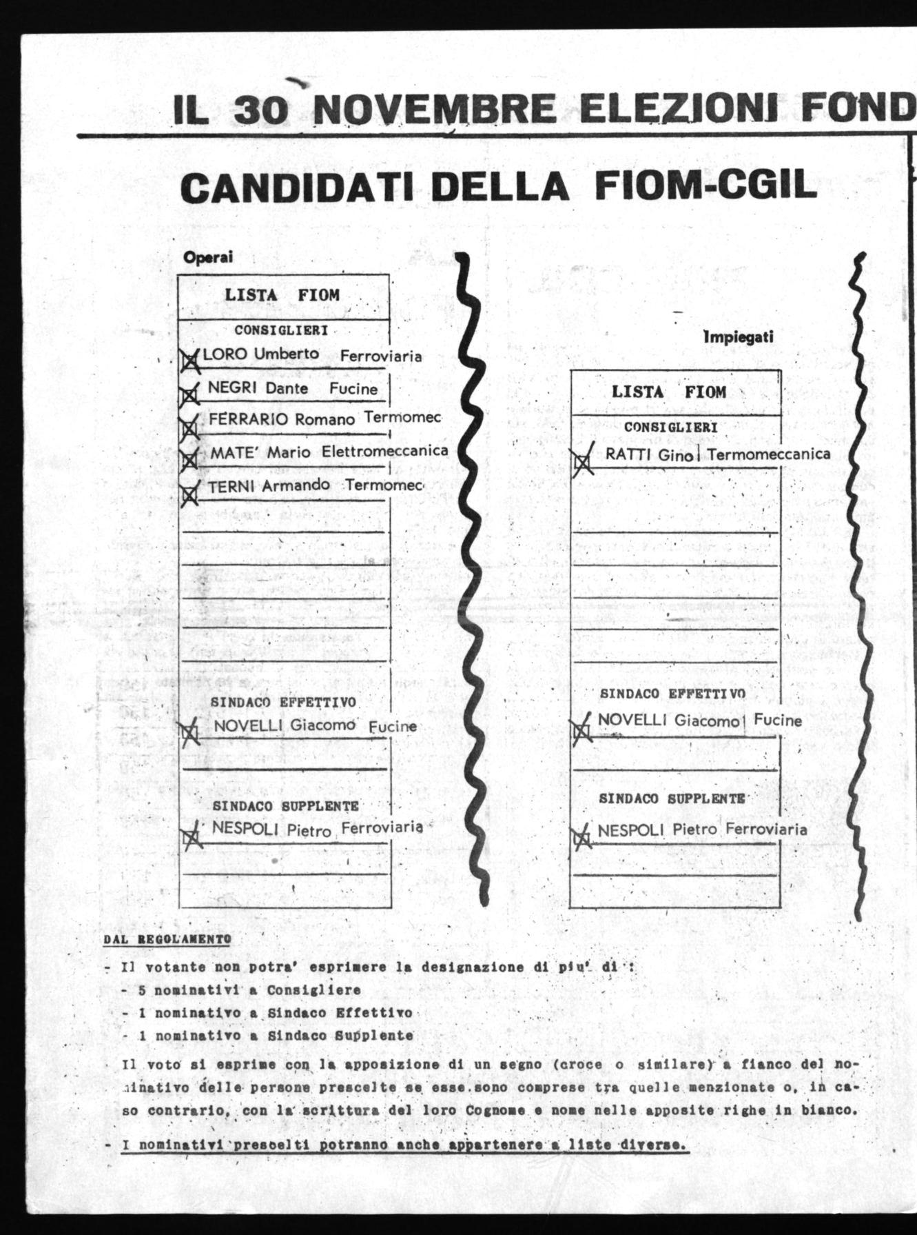 La F.I.O.M. - C.G.I.L. nel momento stesso in cui invita tutti i lavoratori a recarsi alle urne per compiere li loro dovere, è certa che, come per il passato, gli operai e impiegati daranno il loro voto ai candidati che essa ~presenta e che sono stati scelti democraticamente attraverso delle riunioni di attivisti dei diversi stabilimenti e successivamente nella riunione del Comitato di Coordinamento F.I.O.M. della Brada.