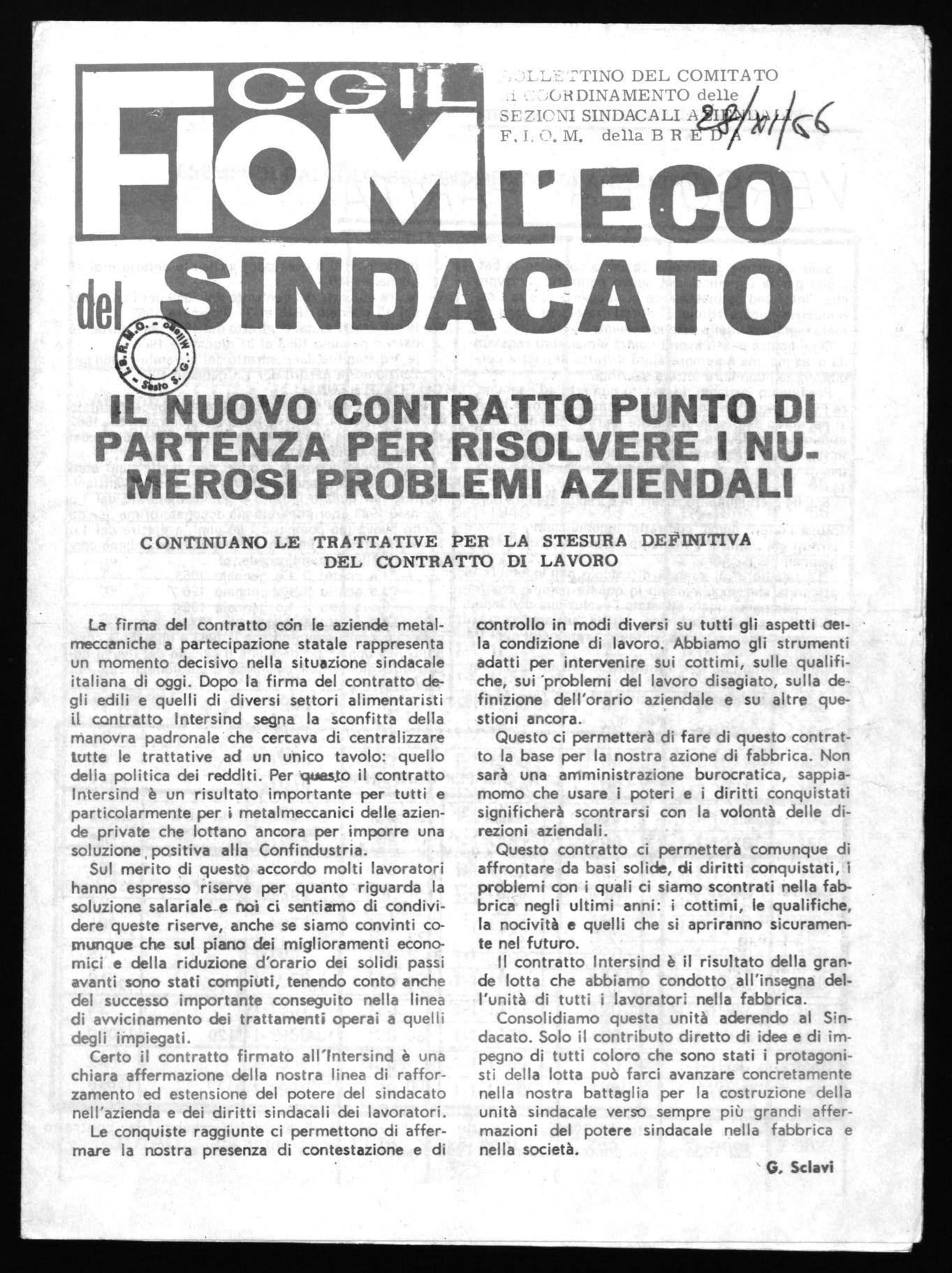 Questo ci permetterà di fare di questo contratto la base per la nostra azione di fabbrica. Non sarà una amministrazione burocratica, sappiamomo che usare i poteri e i diritti conquistati significherà scontrarsi con la volontà delle direzioni aziendali.