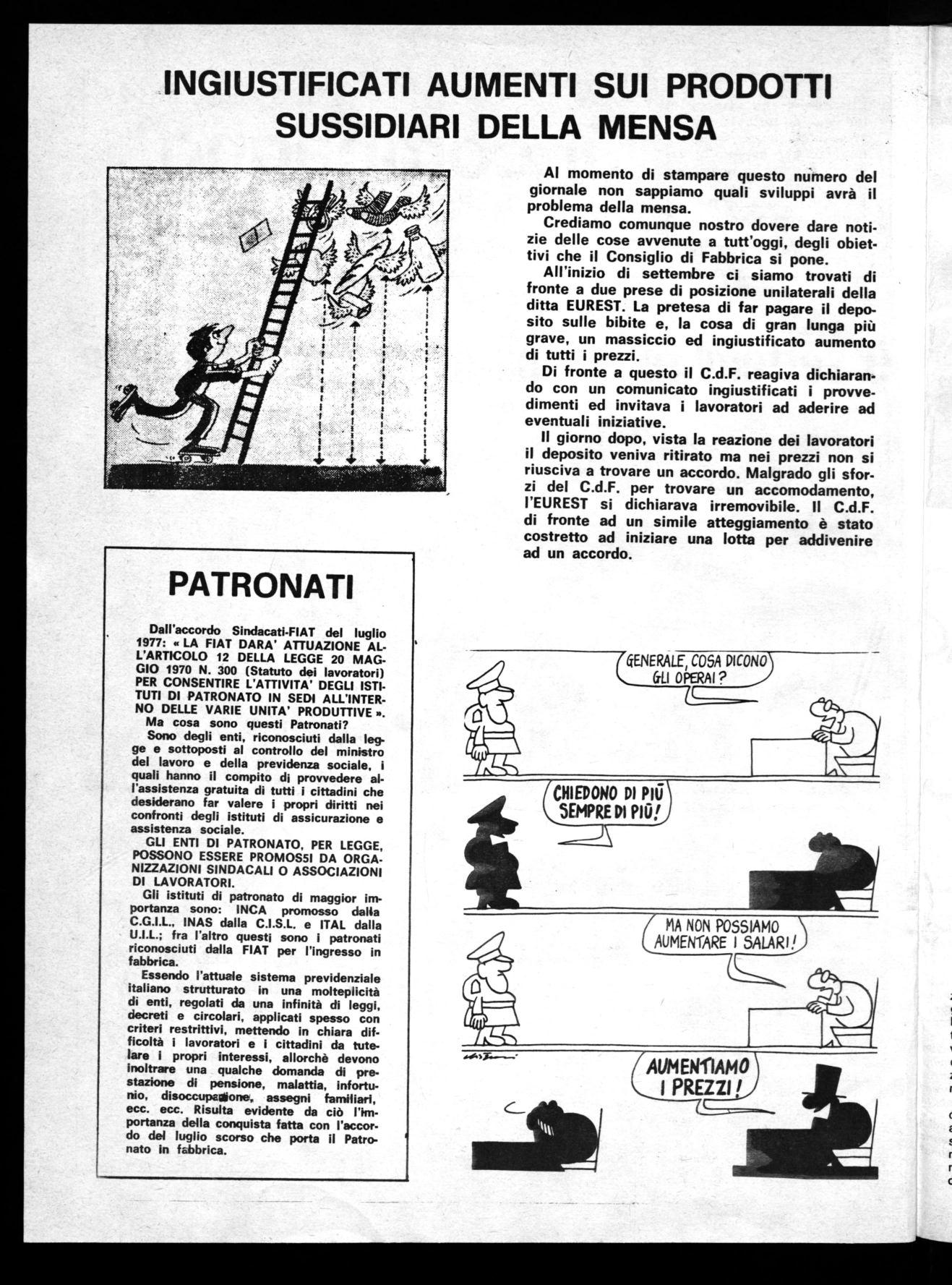 Dall'accordo Sindacati-FIAT del luglio 1977: « LA FIAT DARA' ATTUAZIONE ALL'ARTICOLO 12 DELLA LEGGE 20 MAGGIO 1970 N. 300 (Statuto dei lavoratori) PER CONSENTIRE L'ATTIVITA' DEGLI ISTITUTI DI PATRONATO IN SEDI ALL'INTERNO DELLE VARIE UNITA' PRODUTTIVE ». Ma cosa sono questi Patronati?