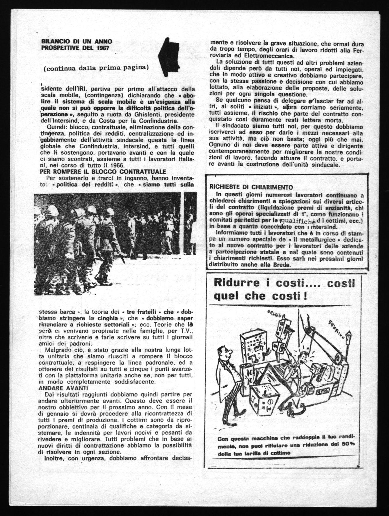 Quindi: blocco, contrattuale, eliminazione della contingenza, politica dei redditi, centralizzazione ed ingabbiamente dell'attività sindacale questa la linea globale che Confindustria, Intersind, e tutti quelli che li sostengono. portavano avanti e con la quale ci siamo scontrati, assieme a tutti i lavoratori italiani, nel corso di tutto il 1966.