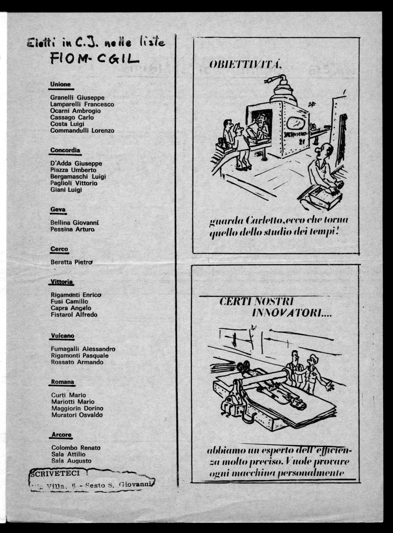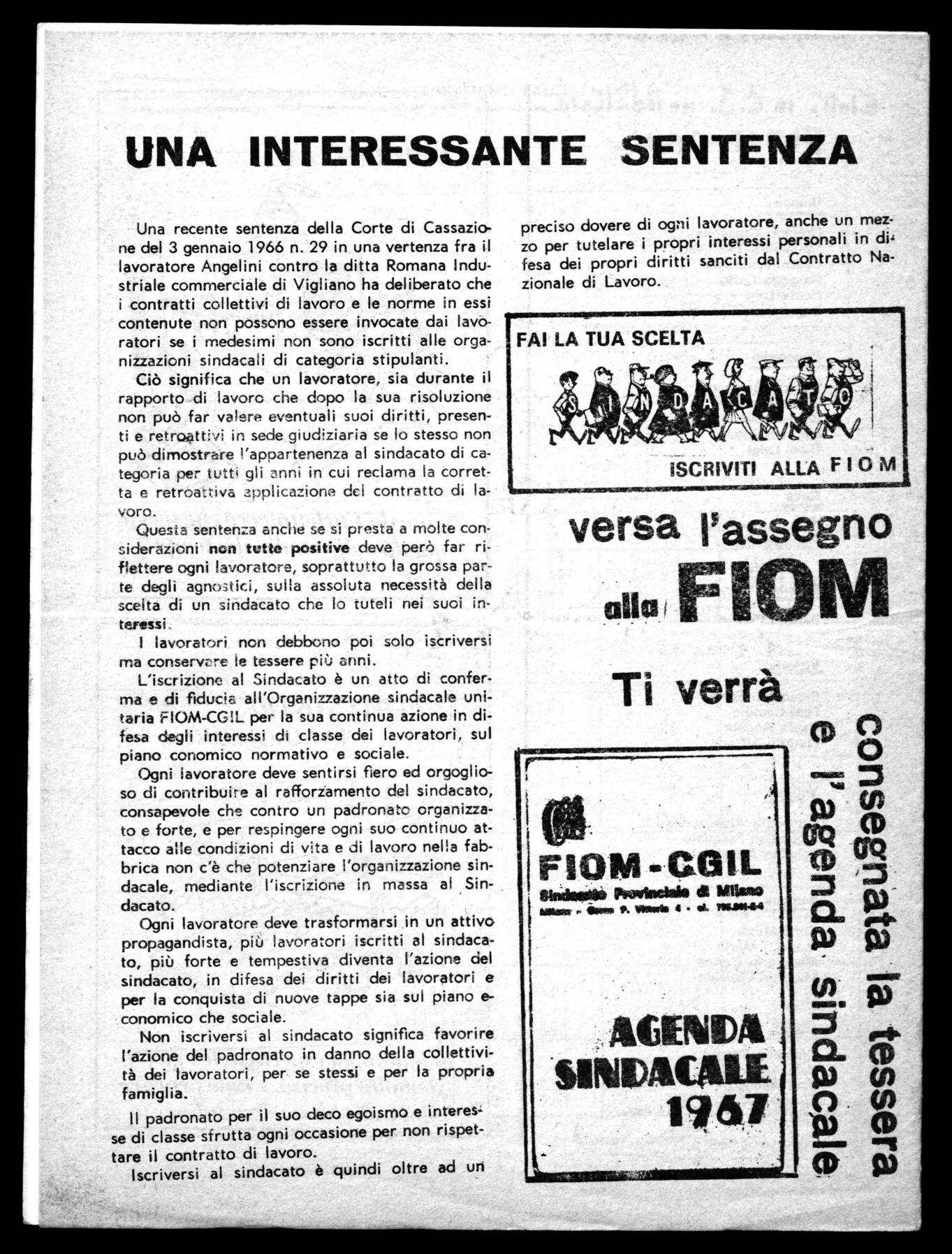 L'iscrizione a! Sindacato è un atto di conferma e di fiducia all'Organizzazione sindacale unitaria FIOM-CGIL per la sua continua azione in difesa degli interessi di classe dei lavoratori, sul piano conomico normativo e sociale.