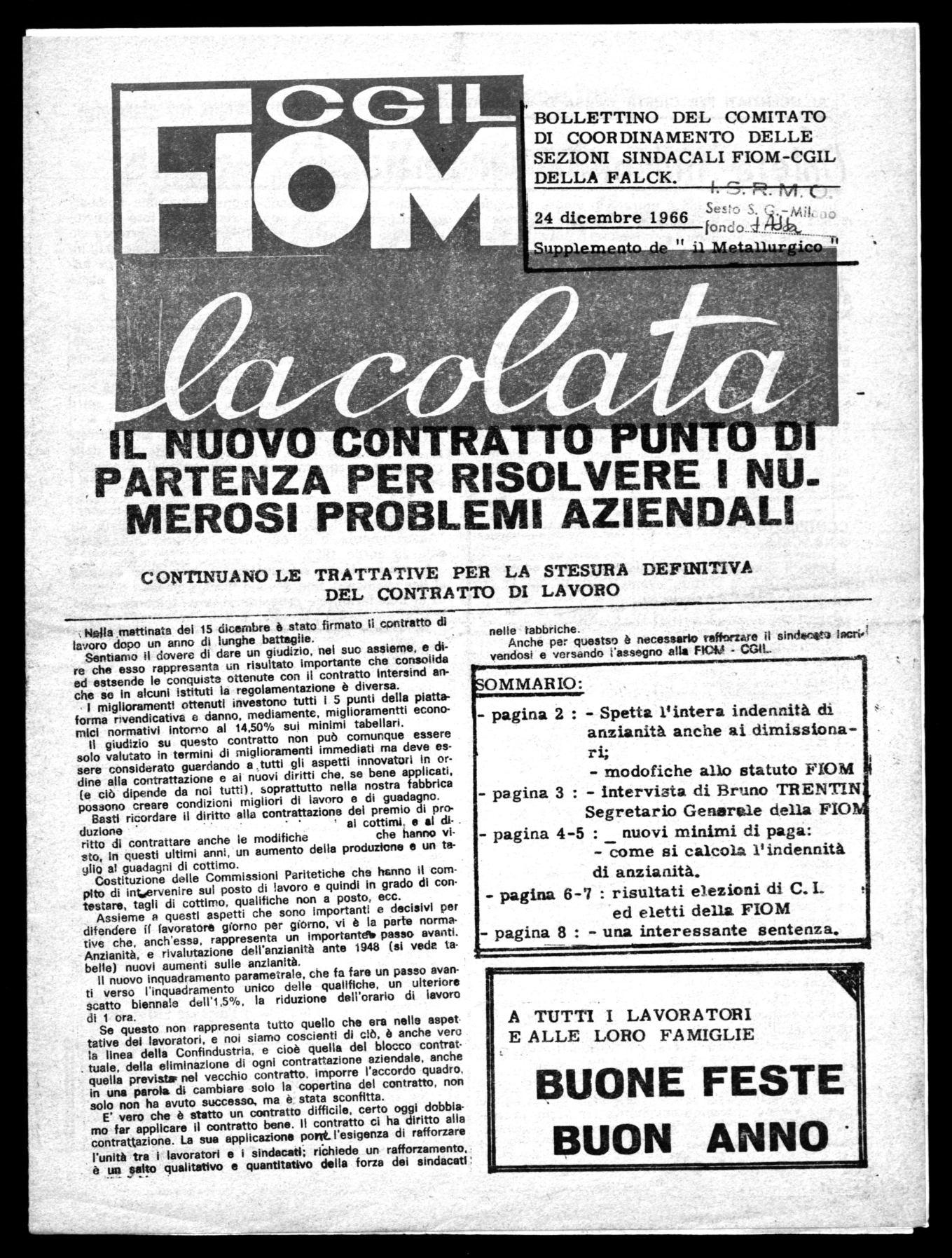 BOLLETTINO DEL COMITATO DI COORDINAMENTO DELLE SEZIONI SINDACALI FIOM-CGIL DELLA FALCK.