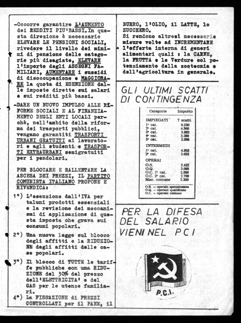 Di fronte a questa grave situazione il P.C.I. indica e porta avanti PRECISI OBIETTIVI E RIVENDICAZIONI A CARATTERE GENERALE.
